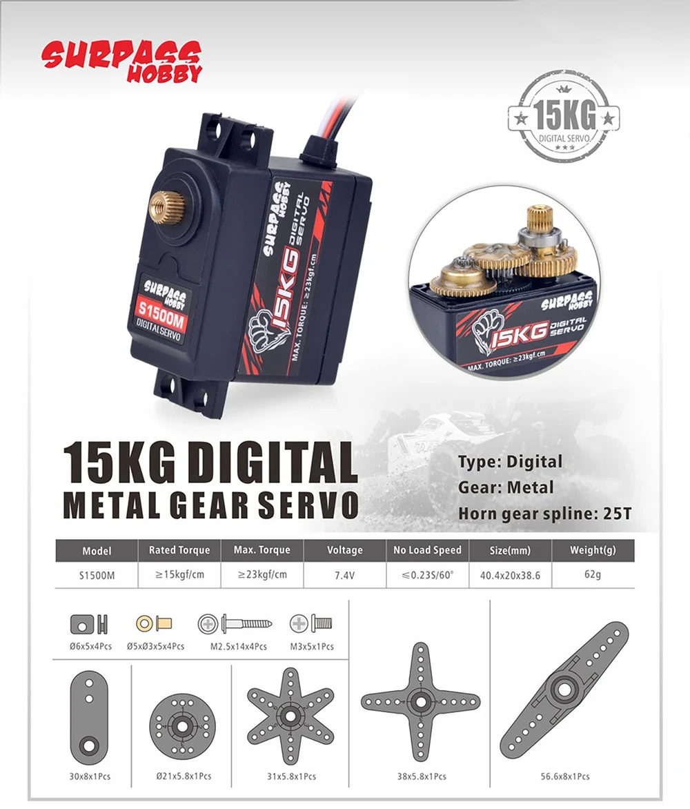 Цифровой сервопривод SURPASS Hobby 9 г, 17 г, 25 г, 6 кг, 9 кг, 15 кг, 20 кг, металлическая передача, микро сервопривод для 18, 110, радиоуправляемых машинок, самолетов, роботов, планера