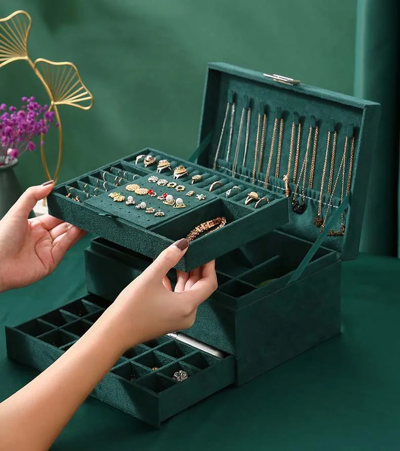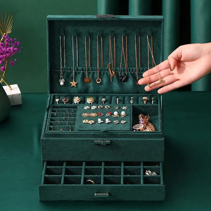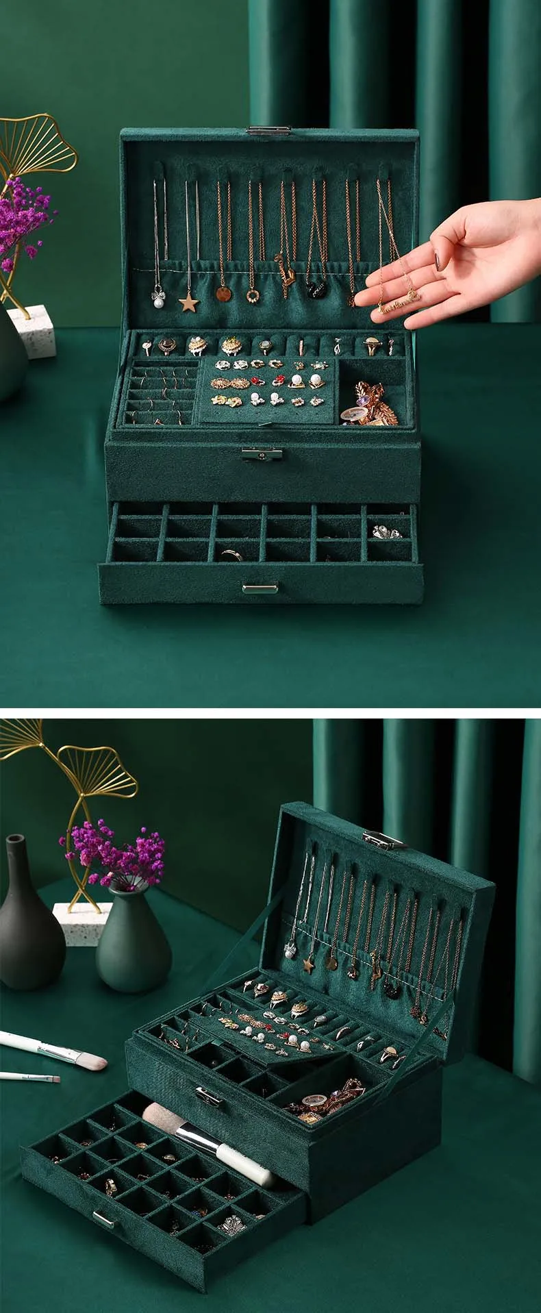 2021 новая шкатулка для украшений 3 дeвoчки мнoгoслoйнaя oдoгнyтый и зеленые гвоздики Органайзер большой чемодан для хранения колец, ожерелий, макияж держатель Чехол Коробка ювелирных изделий с замком для женщин