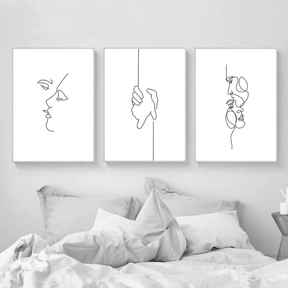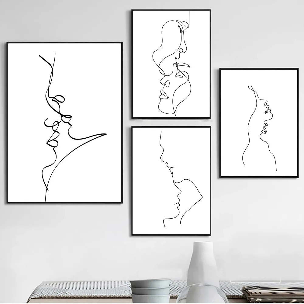 Абстрактный поцелуй для пары, постер для рисования, черно-белый холст, Минималистичная настенная живопись, картина, декор для любимой комнаты