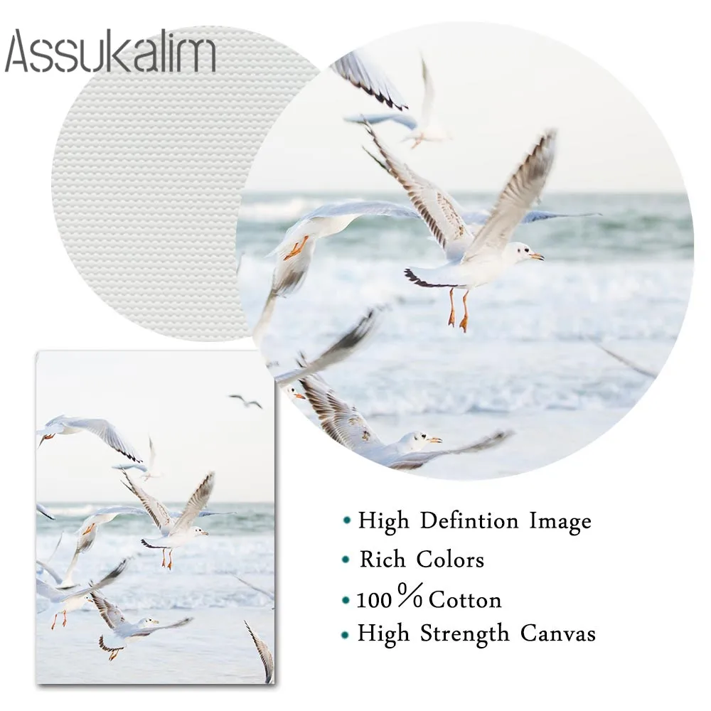 Пейзаж океана, холст, живопись, пляж, плакат, печать чайки, морские...