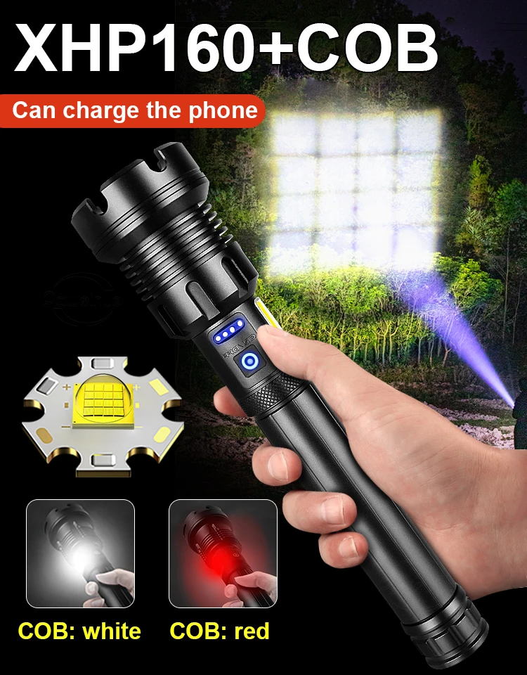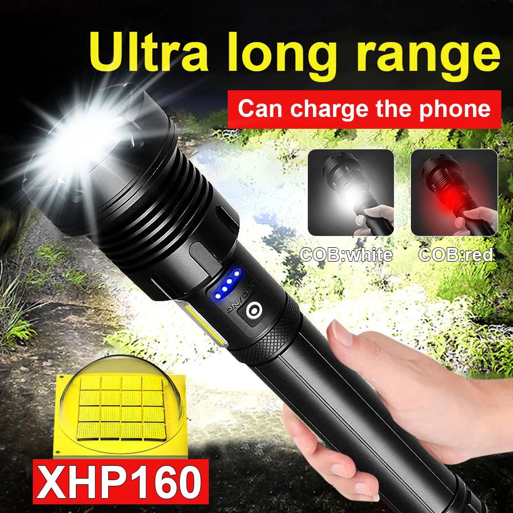 Фонарик 850000 лм XHP160 COB, мощный светодиодный тактический фонасветильник s XHP90, светильник заряжаемый фонарик 18650