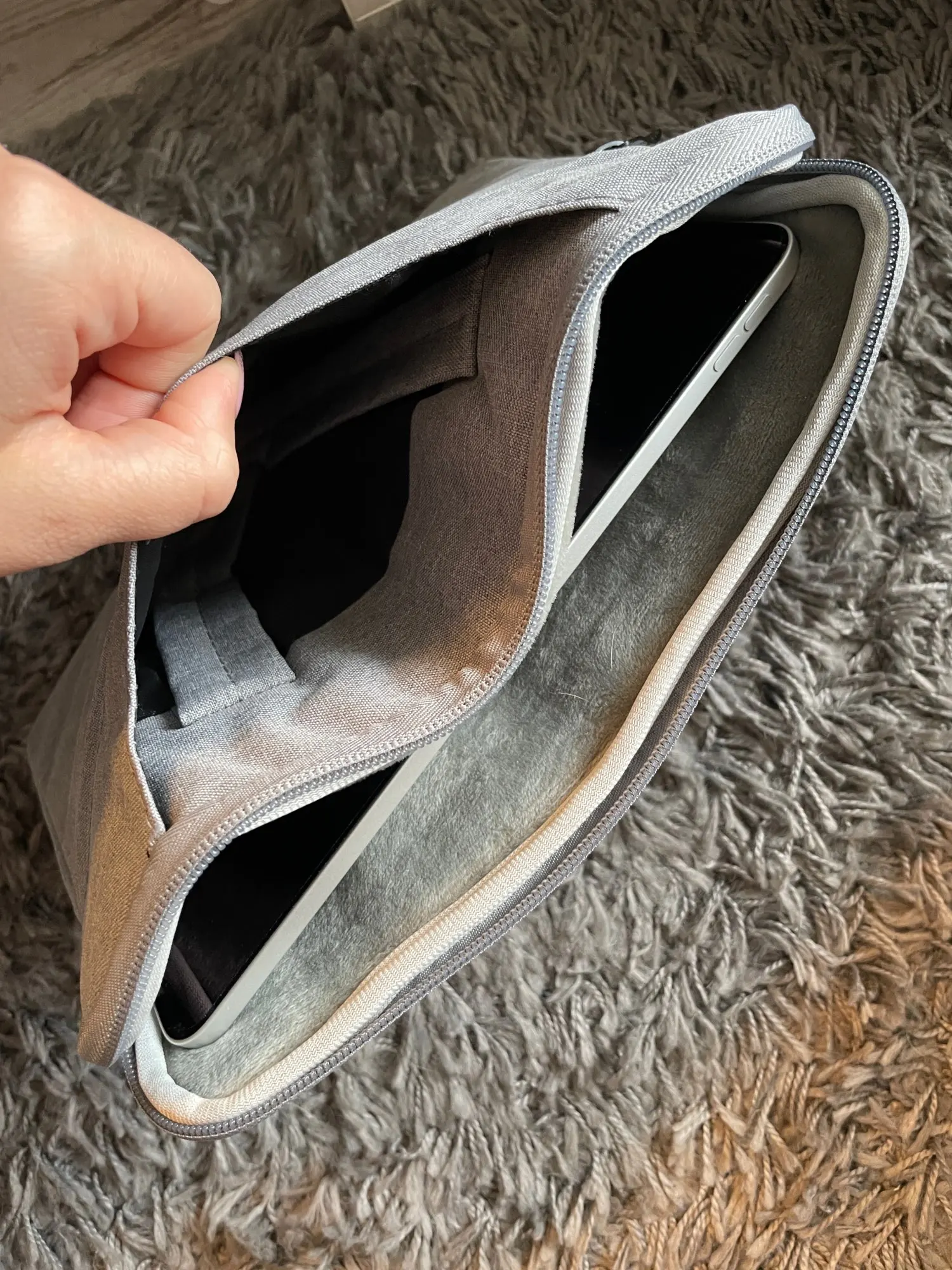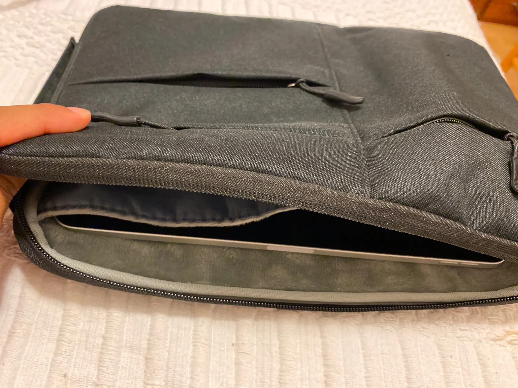 IPad отлично подходит (iPad Air 4-го поколения). На последней картинке показано, как выглядит внутри. Если у меня был жесткий чехол и клавиатура с ним, я уверен, что он подойдет еще лучше. Хороший прочный материал-не слишком легко носить и разрывать, я думаю. Хорошая стоимость. Около 15-20 рабочих дней.