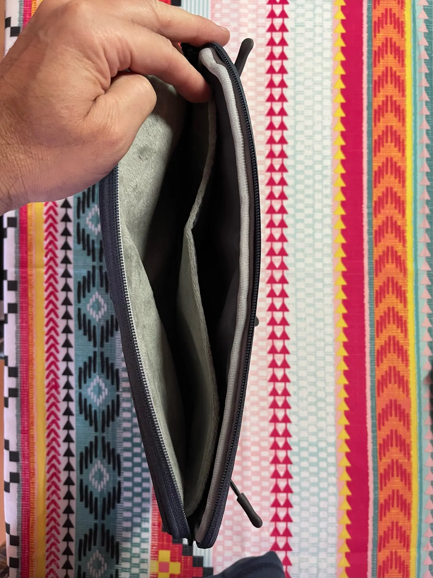 Очень доволен товаром. Он мягкий внутри, так что он легко защищает планшет. Снаружи действительно водонепроницаемый. Вы можете легко поместиться в iPad и волшебную клавиатуру или в Logitech pebble one.