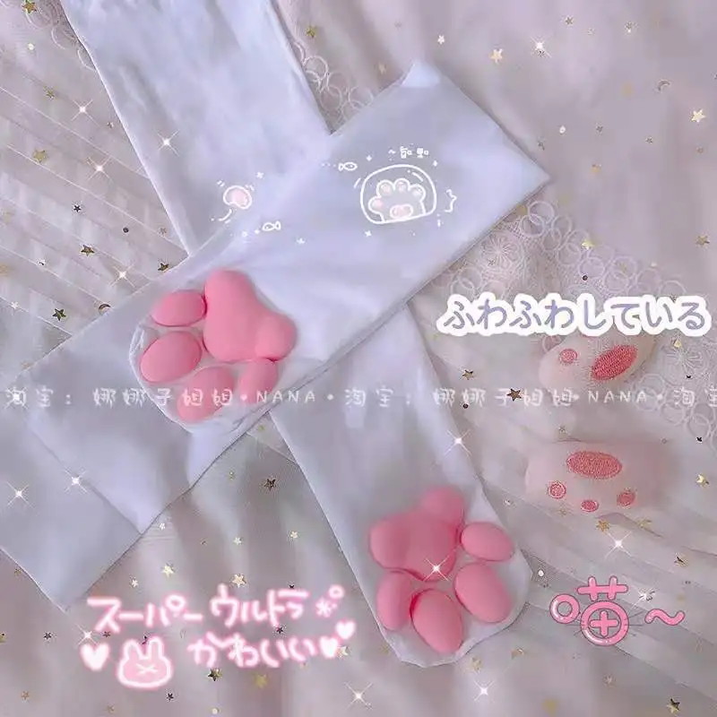 Чулки до бедра с кошачьими лапками, модные чулки с пальцами, кавайн...