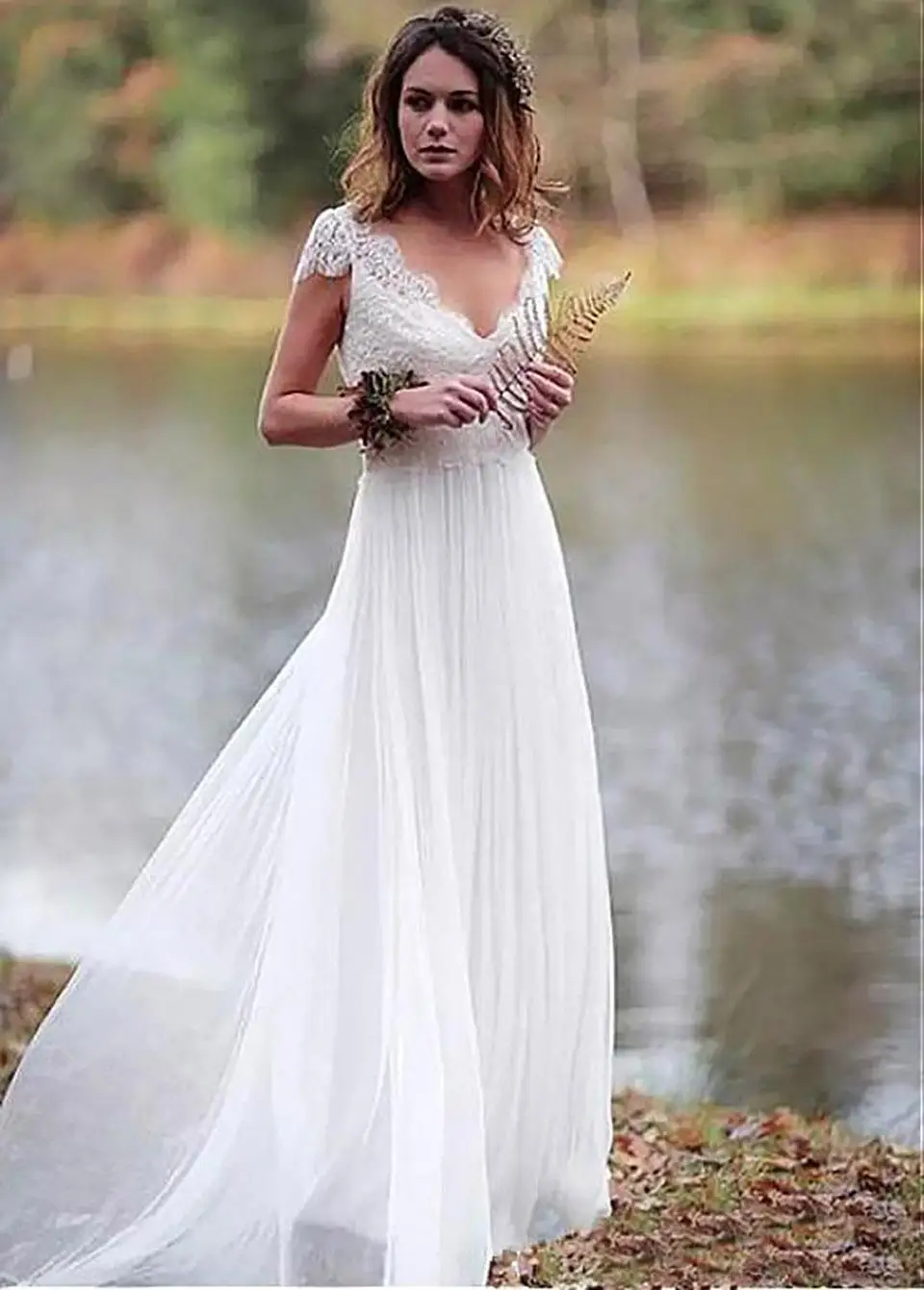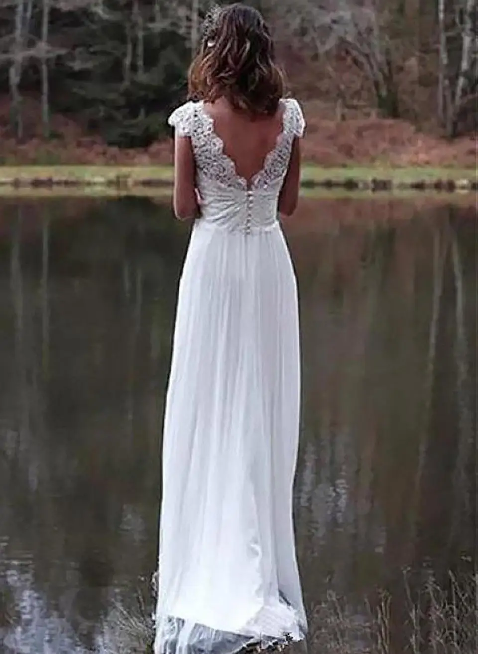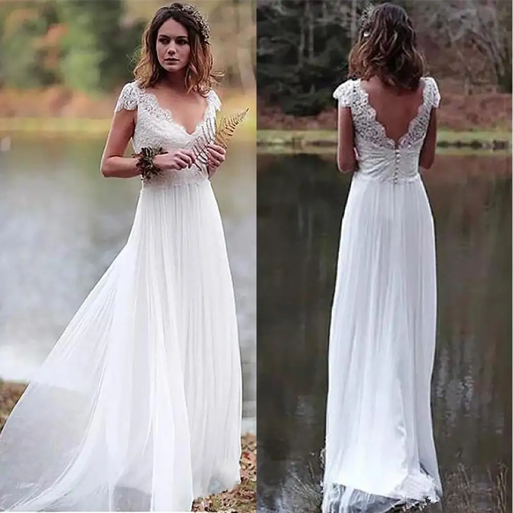 Пляжные богемные Свадебные платья с V-образным вырезом и открытой спиной, трапециевидные, с короткими рукавами, аппликация из шифонового кружева, свадебные платья Boho