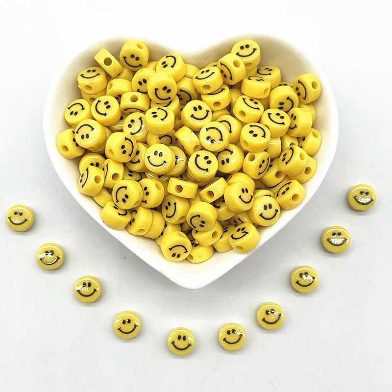 Новый 20 штук 8*4 мм желтый Улыбающееся со смайликом и надписью акриловые бусины для самостоятельного изготовления ювелирных изделий браслет ручной работы аксессуары