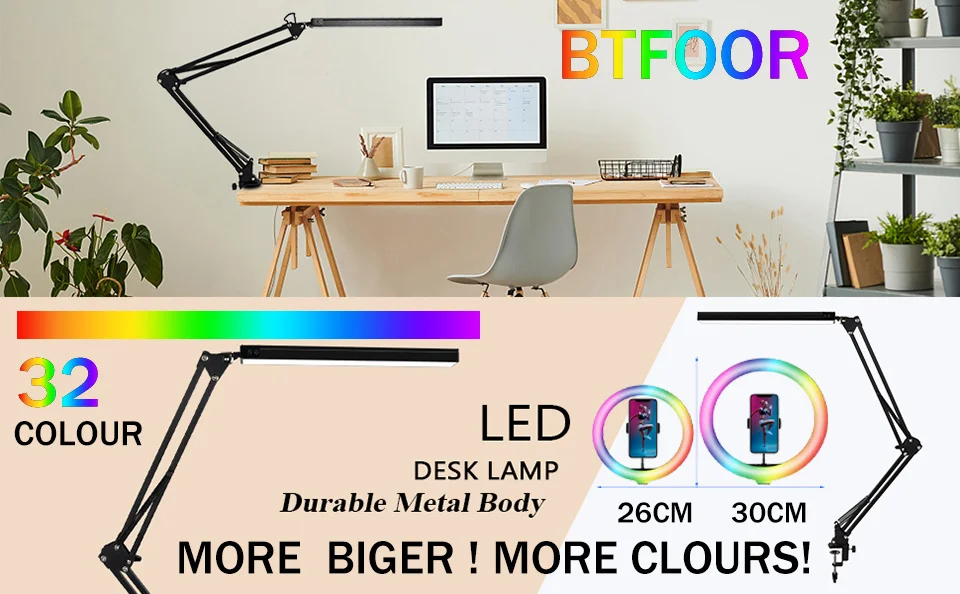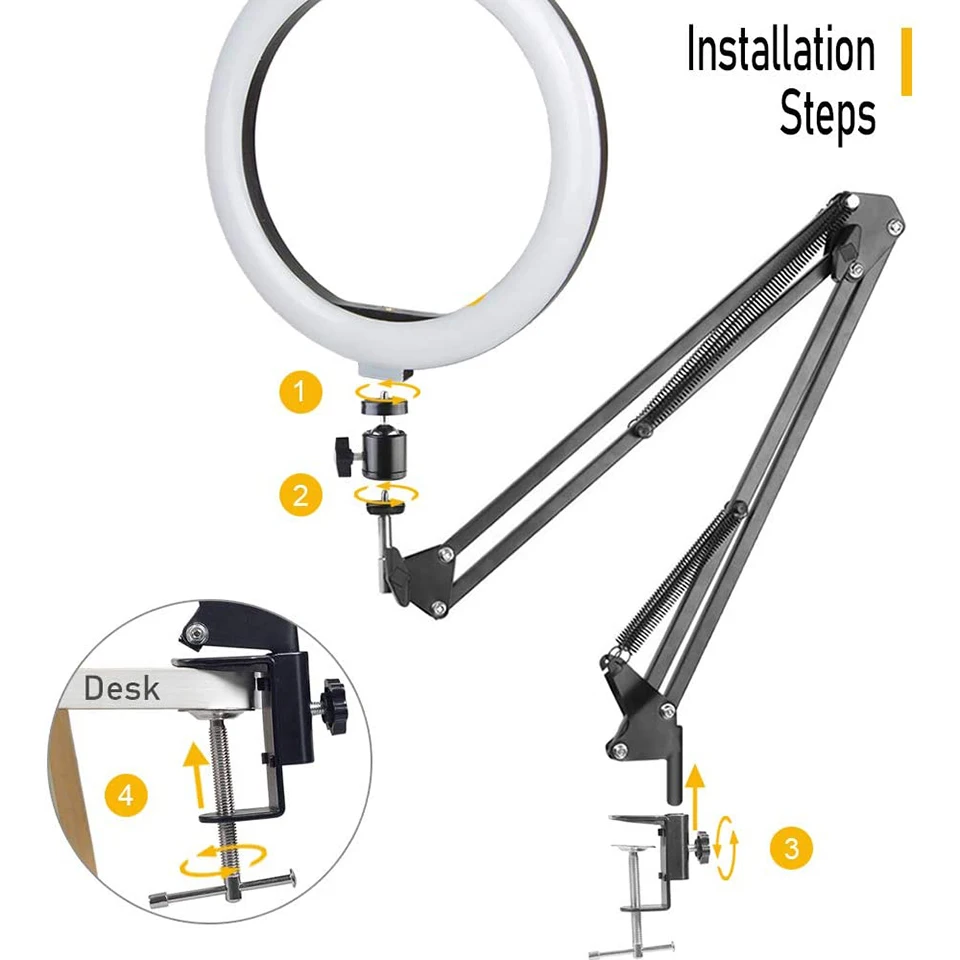 Кольцевой светильник для селфи, RGB LED Кольцевой светильник для селфи, настольная лампа с длинным кронштейном, подставка для планшета, для видео, Youtube, фотосъемсветильник