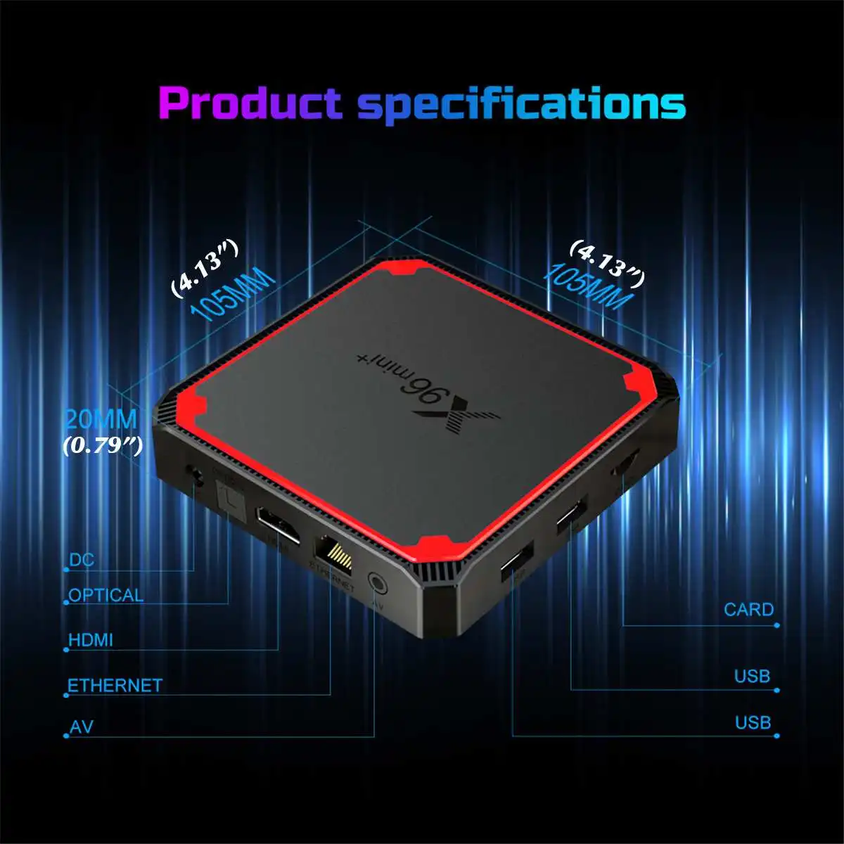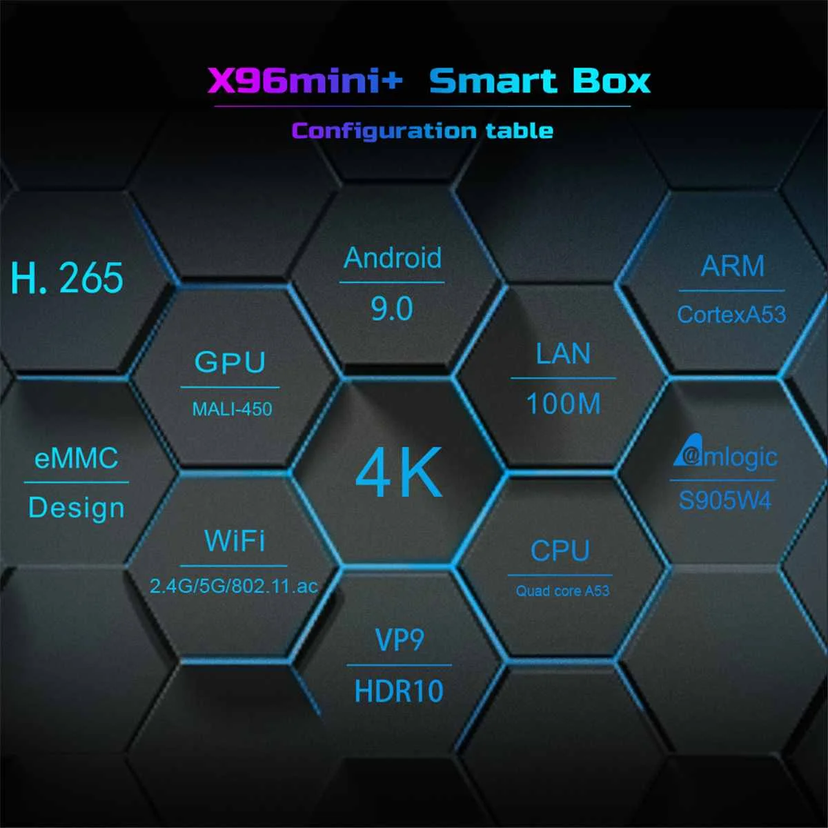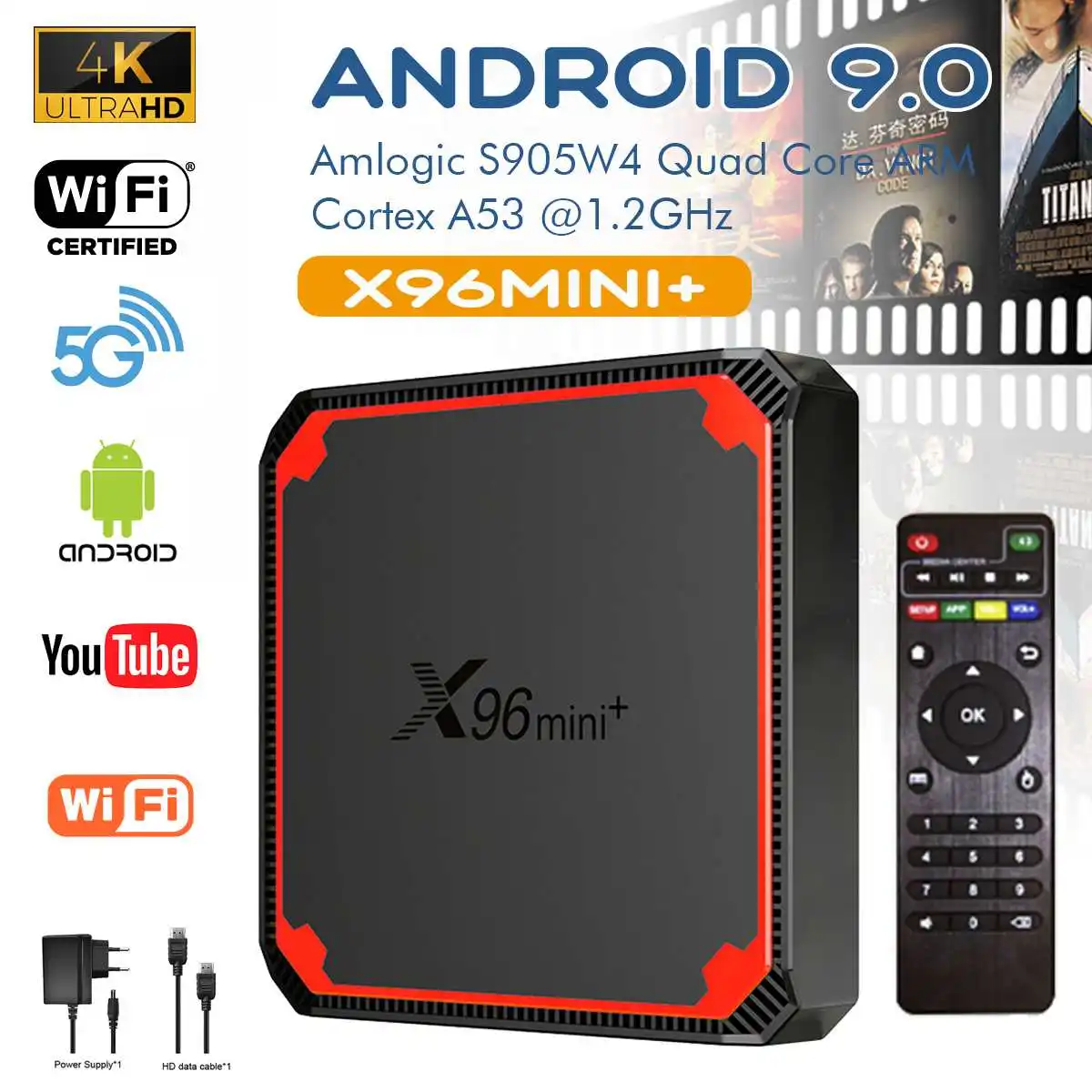 СпецификацияМодель: X96mini +Материал: пластикЦвет: черный + красныйРазмеры: 105x105x20 мм/4,13x4,13x0,79 дюймаТип штекера: штекер США/ЕС (опционально)ОсобенностиЦП: Amlogic S905W4 четырехъядерный ARM Cortex A53 @ 1,2 ГГцГрафический процессор: пятиядерный процессор Mali-450MP GPU @ 750 МГц,DDR: DDR3 1 ГБ или 2 ГбФлэш-память: оригинальная eMMC 8 ГБ или 16 Гб (дополнительно: 32 ГБ/64 Гб/128 ГБ)Wi-Fi Amlogic W1: 2,4G & 5G; 802,11 acПитание: зарядное устройство постоянного тока 5 В/2 АОС: ОС Android 9,0, поддержка обновления OTAI/O2 * USB: порт USB1 * AV OUT: Стандартный выход разрешения 480i/576i1 оптический: цифровой аудиовыход1 * RJ45: интерфейс Ethernet1 TF-карта: поддержка 4 ГБ/8 ГБ/16 ГБ/32 ГБ/64 ГБПрограммное обеспечениеВидео:* Видеодвижок AMLogic (AVE) с выделенными аппаратными декодерами и кодерами* Поддержка нескольких «безопасных» сеансов декодирования видео и одновременного декодирования и кодирования* Декодирование видео/изображений* VP9 профиль-2 до 4K x 2K @ 30fps* H.265 HEVC MP-10@L5.1 до 4K x 2K @ 30fps* H.264 AVC HP@L5.1 до 4K x 2K @ 30fps* H.264 MVC до 1080P @ 60fps* MPEG-4 ASP @ L5 до 1080P @ 60fps(ISO-14496)* WMV/VC-1 SP/MP/AP до 1080P @ 60fps,RealVideo 8/9/10 до 1080P @ 60fps* AVS-P16(AVS +) /AVS-P2 JiZhun Profile до 1080P @ 60fps* MPEG1 MP/HL до 1080P @ 60fps,MPEG2 MP/HL до 1080P @ 60fps* Поддерживает MP3, AAC, WMA, RM, FLAC, Ogg,HD JPEG, BMP, GIF, PNG, TIFЯзык: многосторонний языкПриложенияОнлайн: просматривайте все видеосайты, Поддерживайте Netflix,Hulu, ⑥ Ster, Youtube и т. д.Приложения: приложения свободно загружаются из android market, amazon application store и т. Д.Средний: воспроизведение локальных носителей, Поддержка жесткого диска, Udisk ,TF-карты.Другие:Поддержка видеозвонков Skype, Facebook ,Twitter, электронной почты, офисных костюмов, множества приложений и т. д.Поддержка функции DLNA / MiracastПоддержка беспроводной мыши/клавиатуры 2,4G
