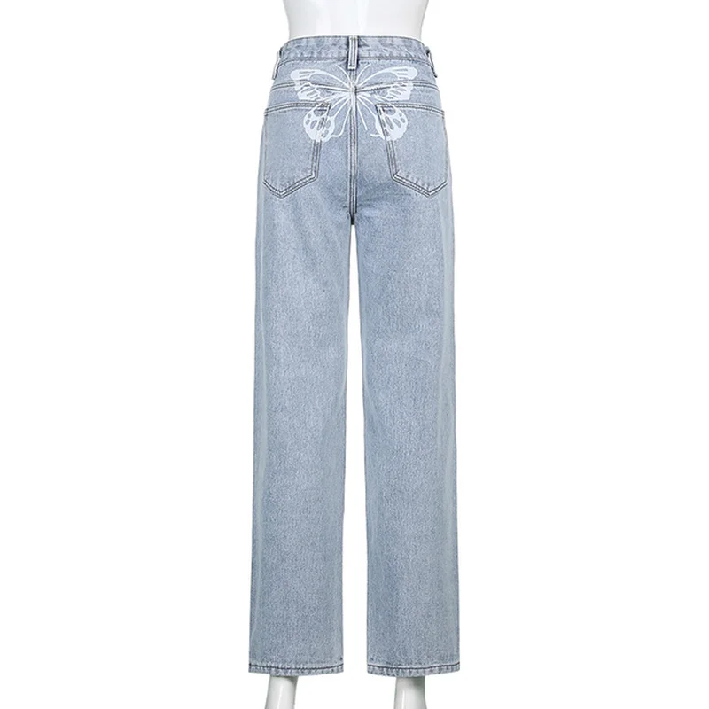 Джинсы женские винтажные с принтом бабочек, повседневные мешковатые...
