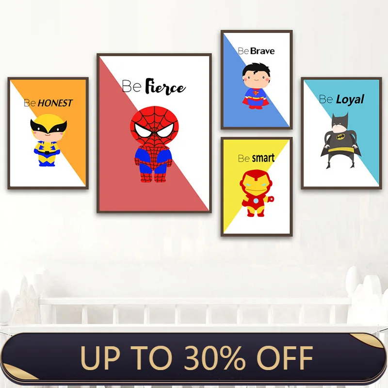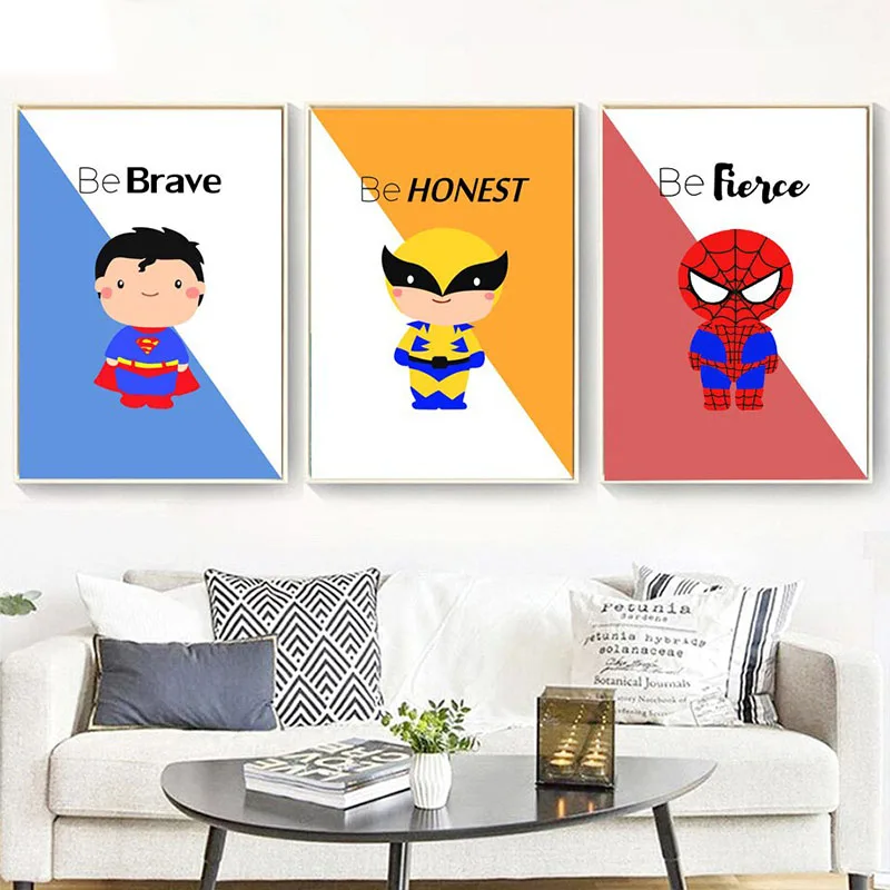 Мультяшные супергерои, Человек-паук, планшетоны и принты, настенные художественные картины для детской комнаты, Декор, квадраты, без рамки