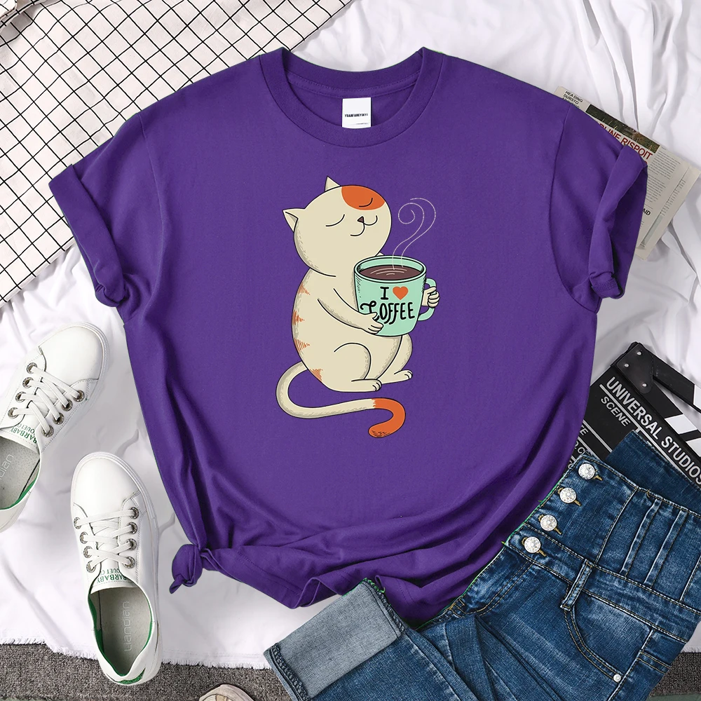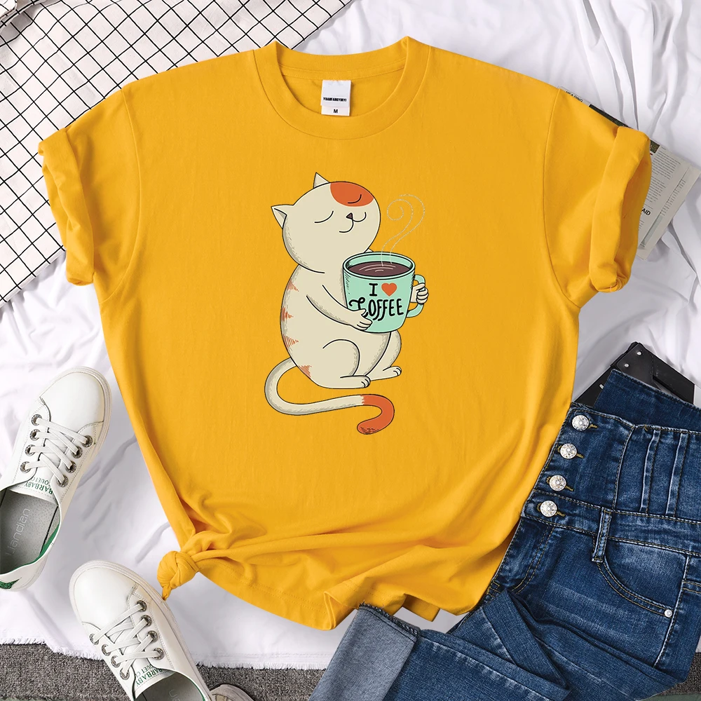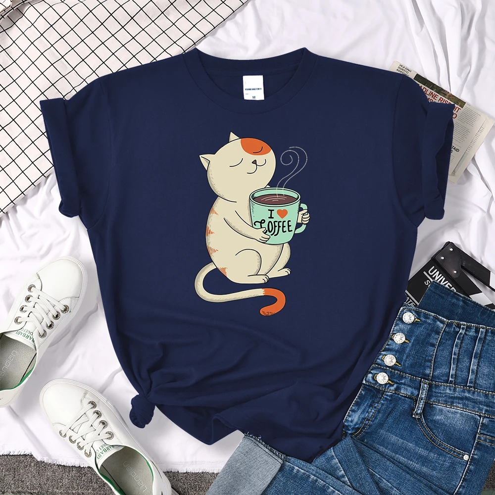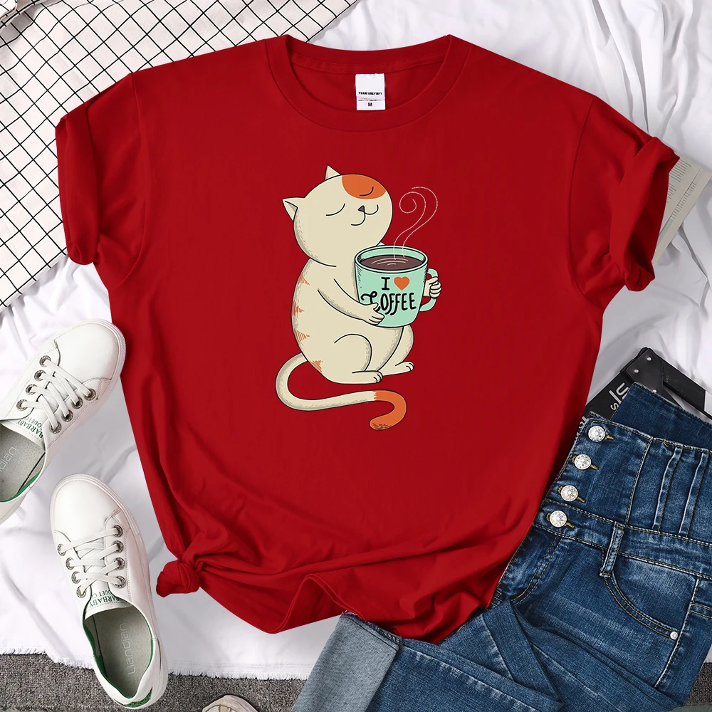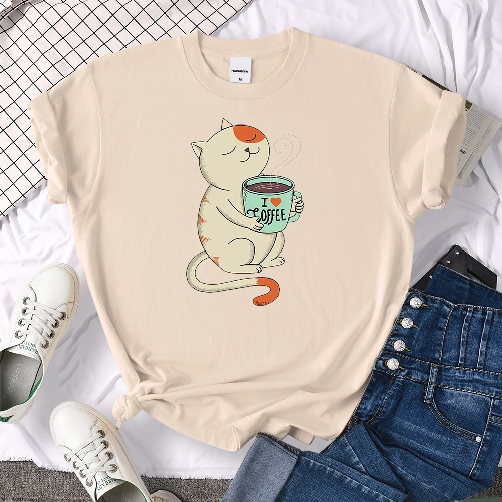 Футболка женская с принтом I Love Coffee, свободный Воздухопроницаемый Топ в стиле Харадзюку, с круглым вырезом, модная винтажная рубашка