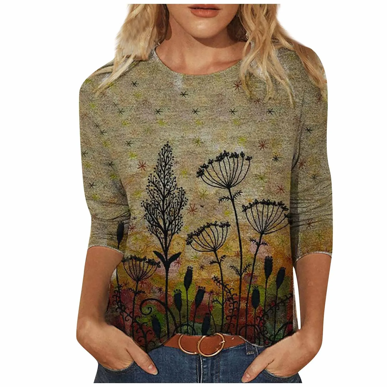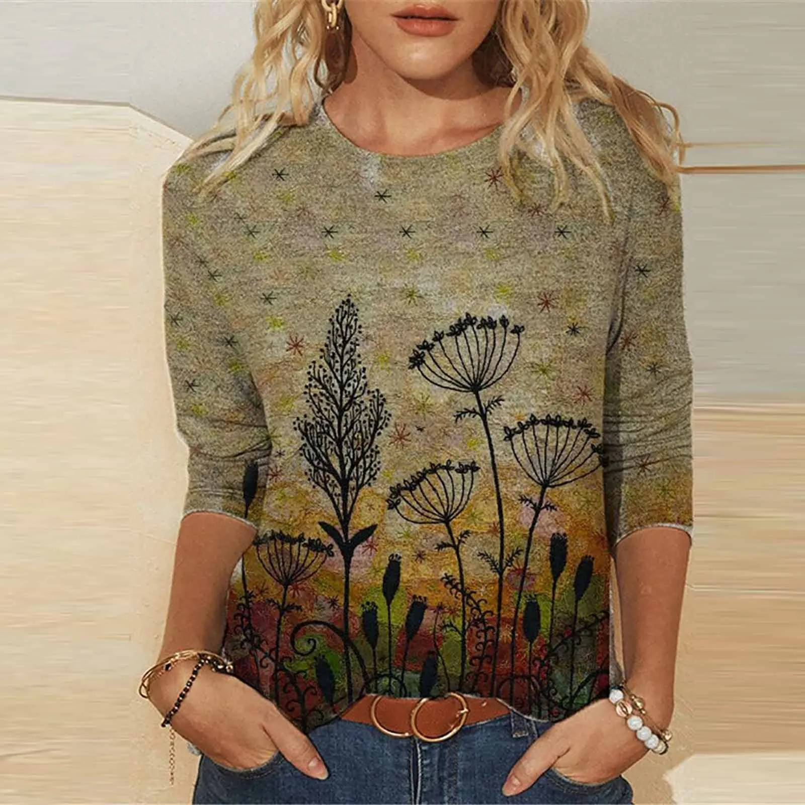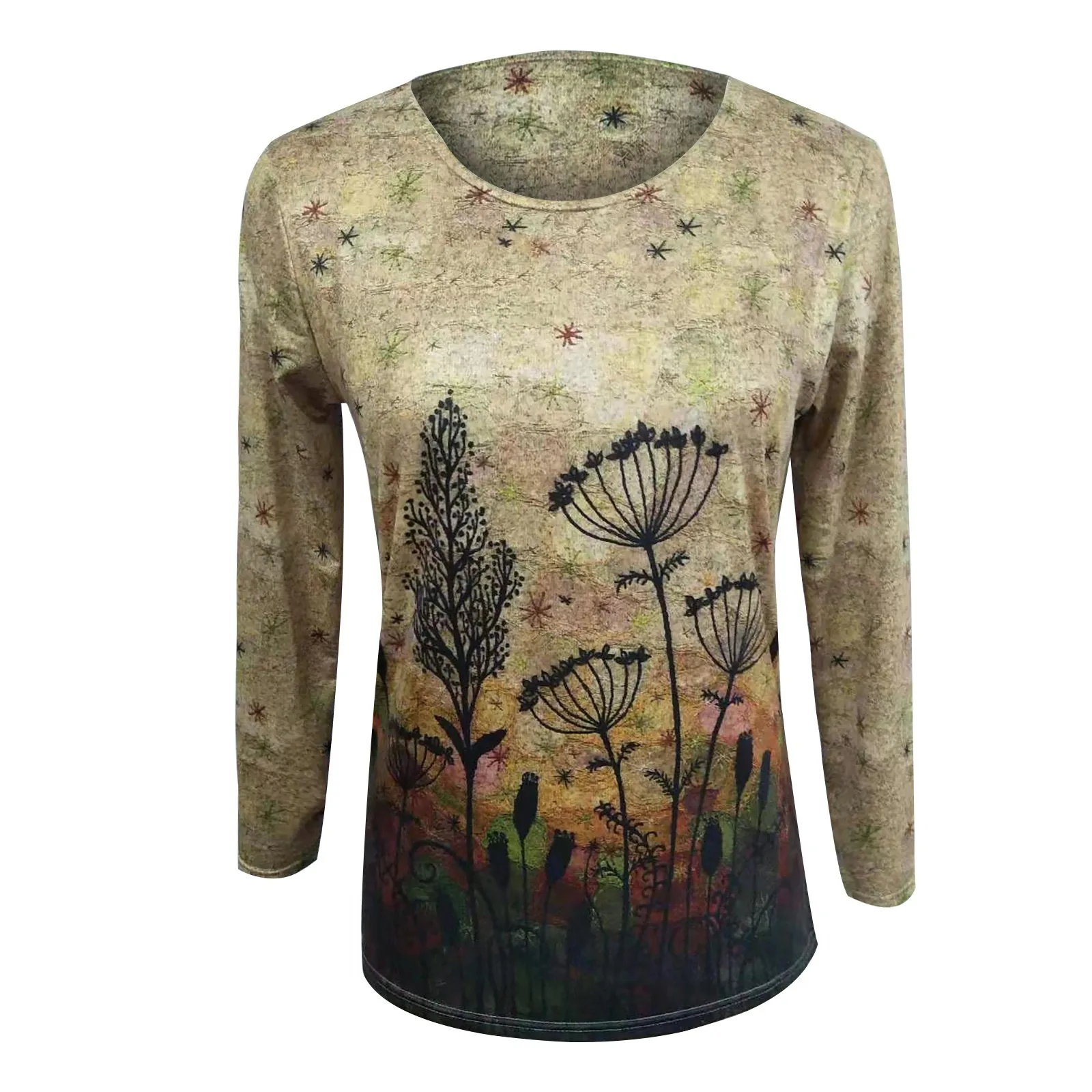 Женские повседневные Модные свободные топы с круглым вырезом и цветным принтом с длинным рукавом