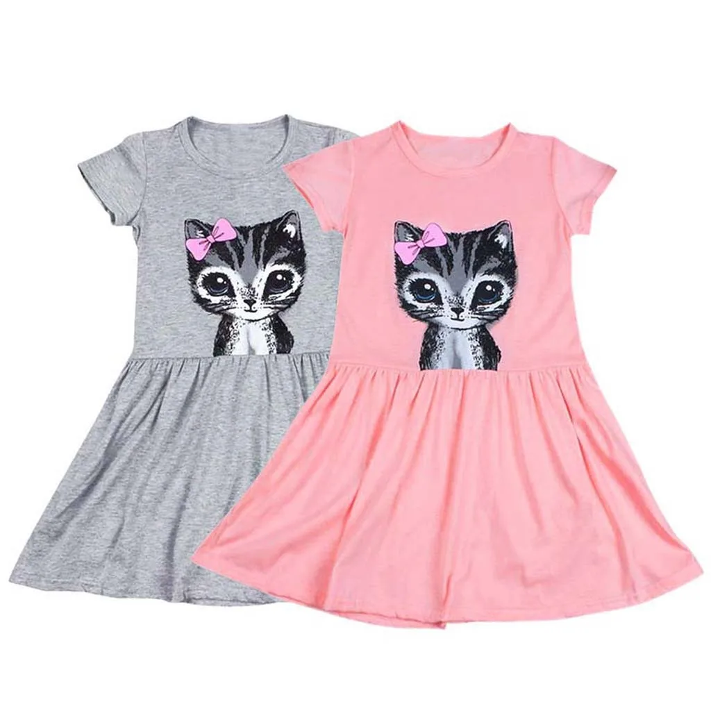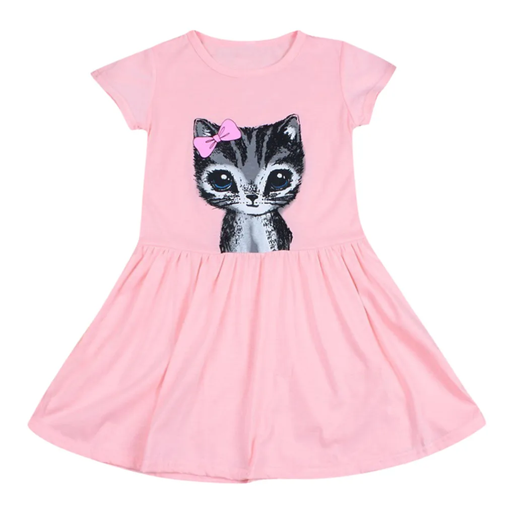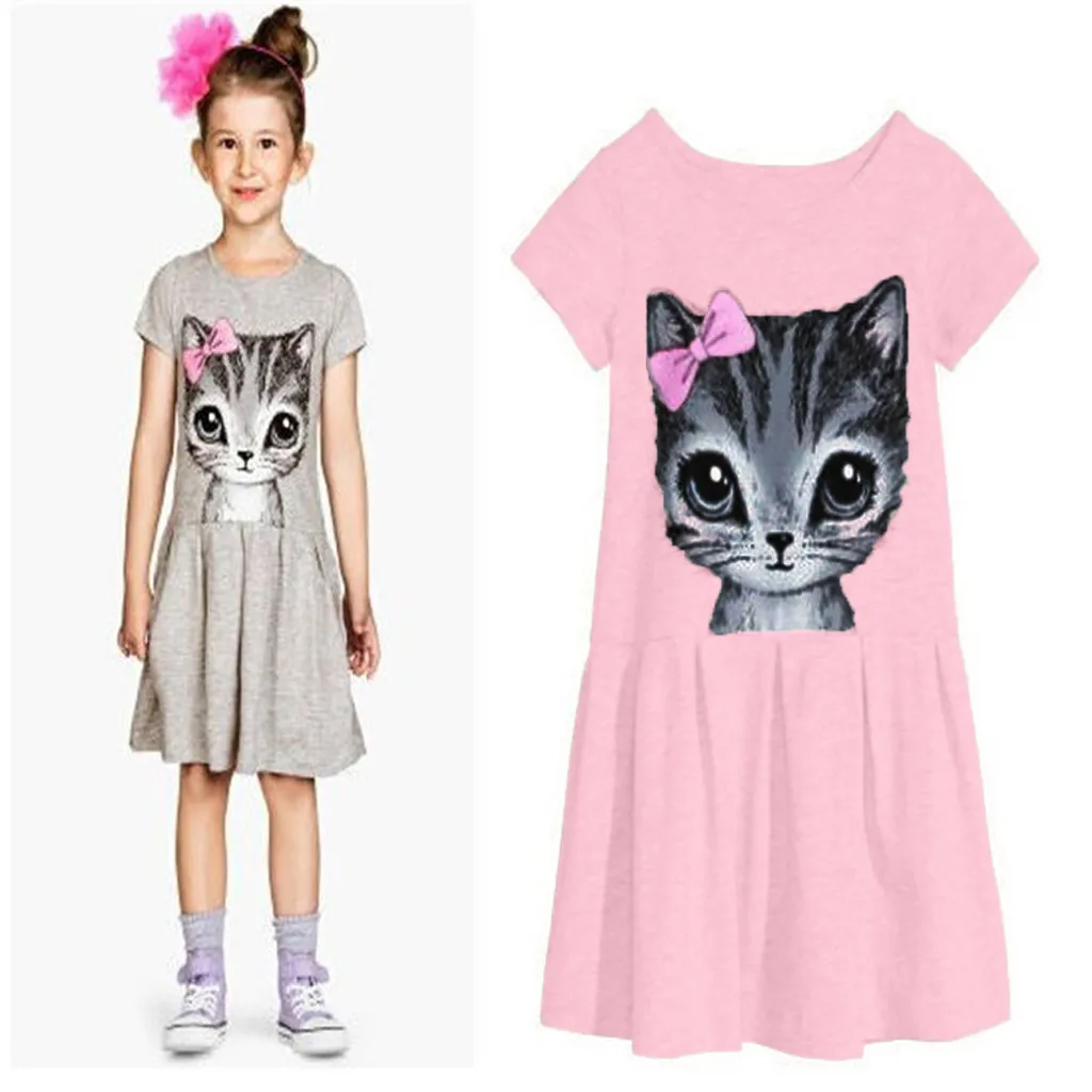Летнее платье для девочек с коротким рукавом 2021, мультяшная Милая кошка, простая детская юбка с принтом, удобная повседневная детская одежда # M