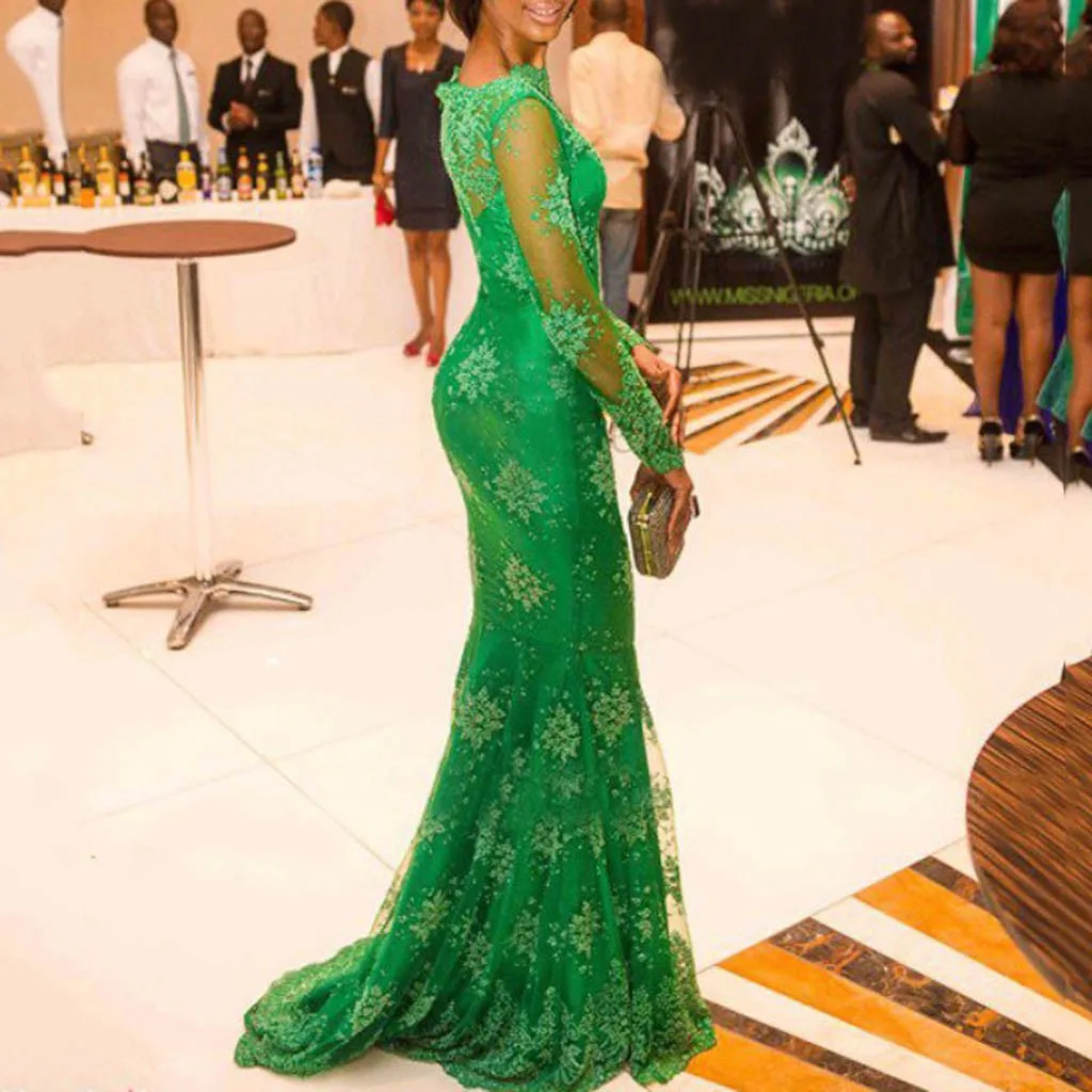 Женское сексуальное однотонное кружевное модное вечернее длинное платье с длинным рукавом