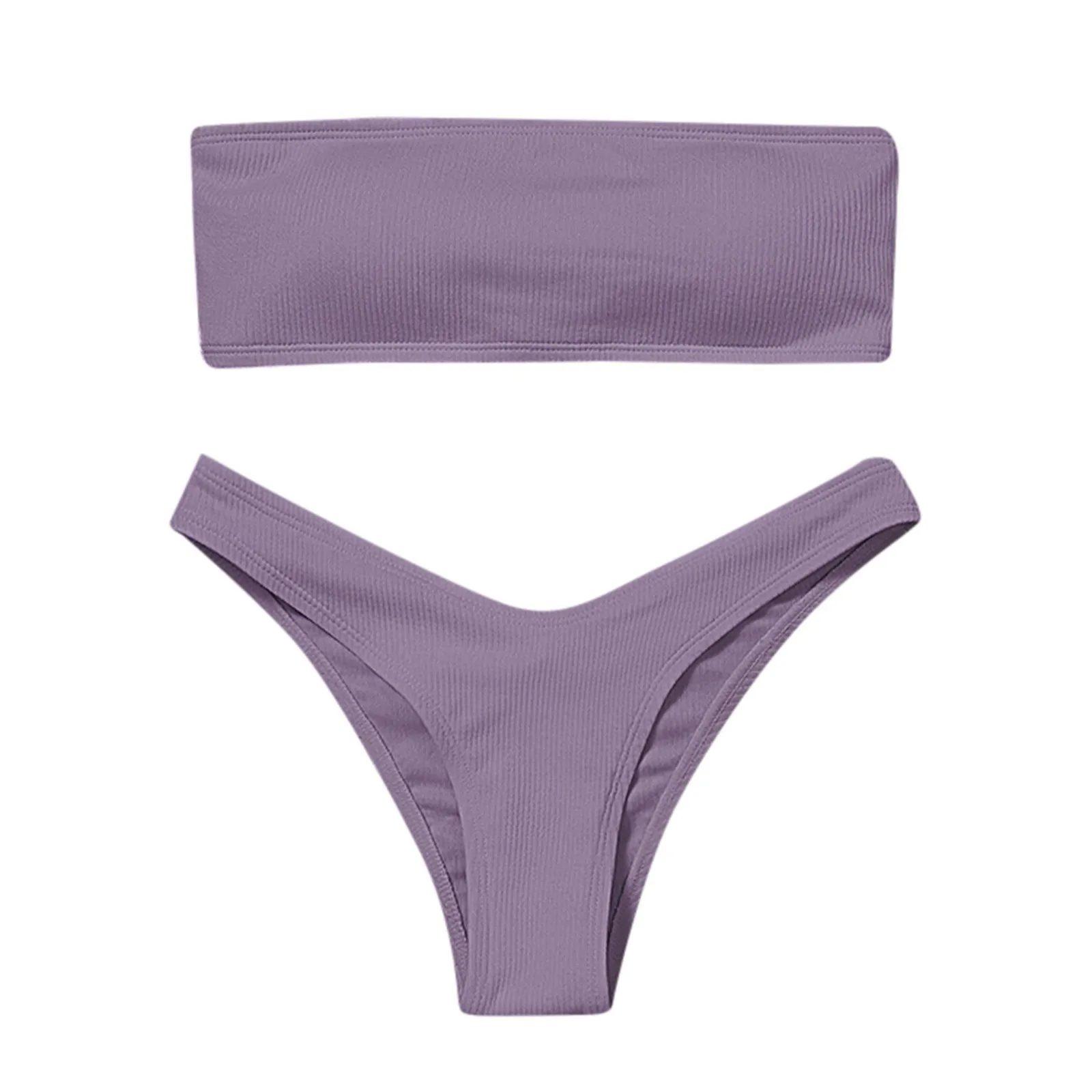Женский однотонный Купальник-бикини с высокой талией, цвет в ассортименте
