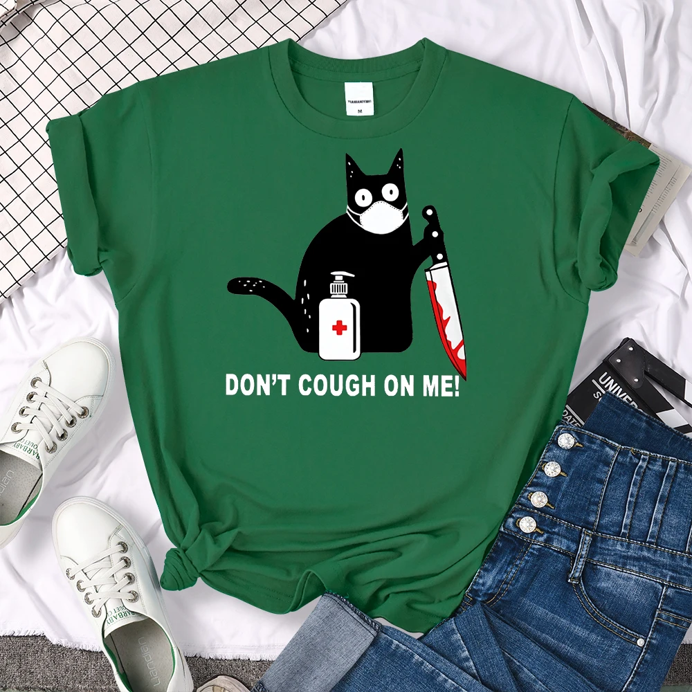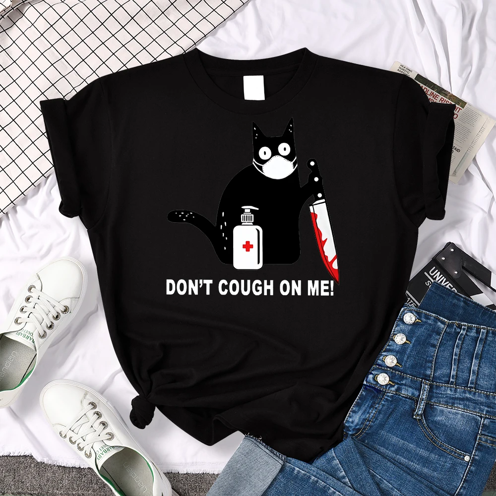 Футболка женская с круглым вырезом, модная рубашка в стиле хип-хоп, с принтом не кашель на мне, с круглым вырезом, мягкая с принтом черного кота
