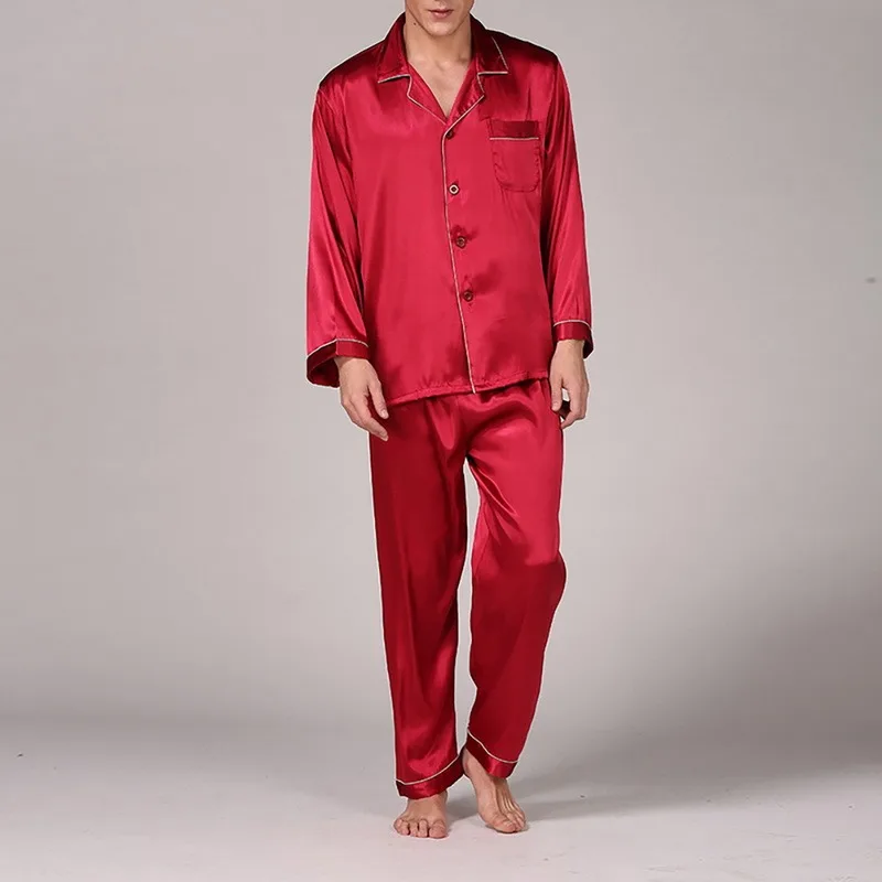 WENYUJH, Весенняя Мужская одежда для сна, сатиновые пижамные комплекты с длинным рукавом для мужчин, домашняя одежда, домашняя одежда, летняя Пижама