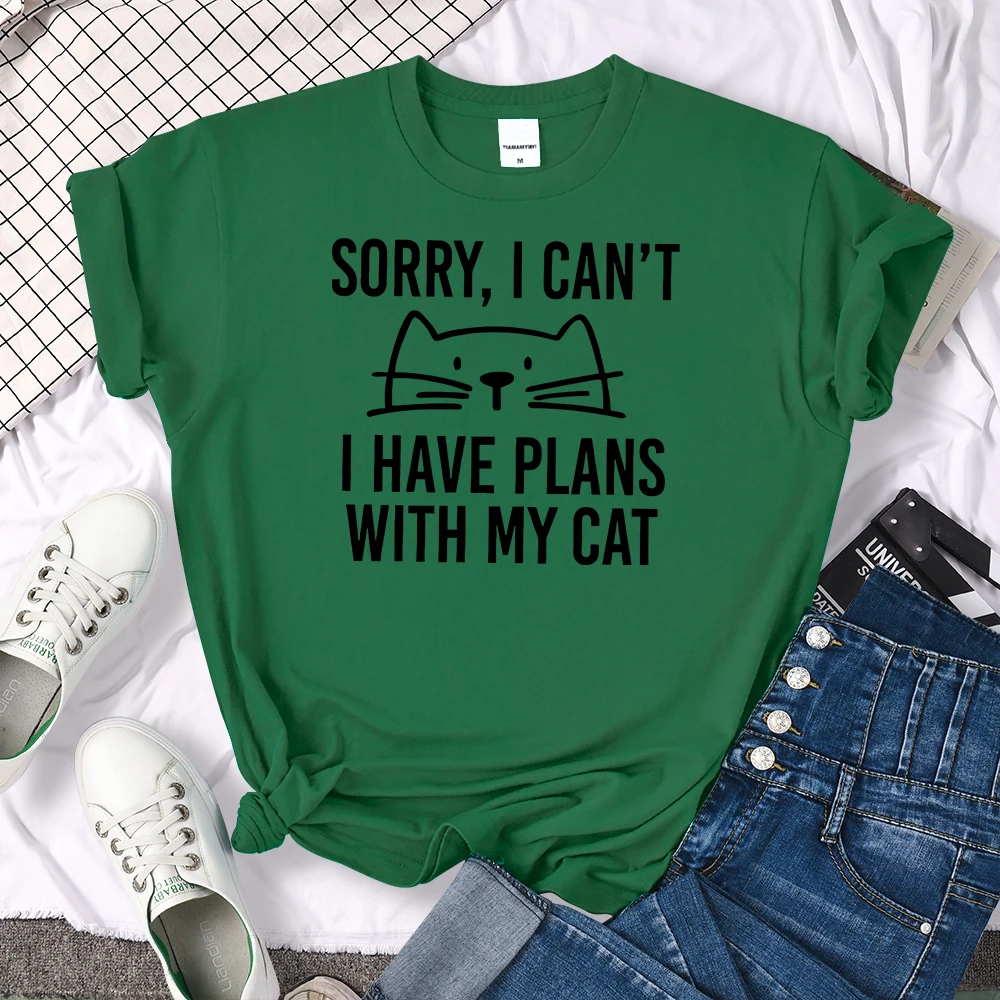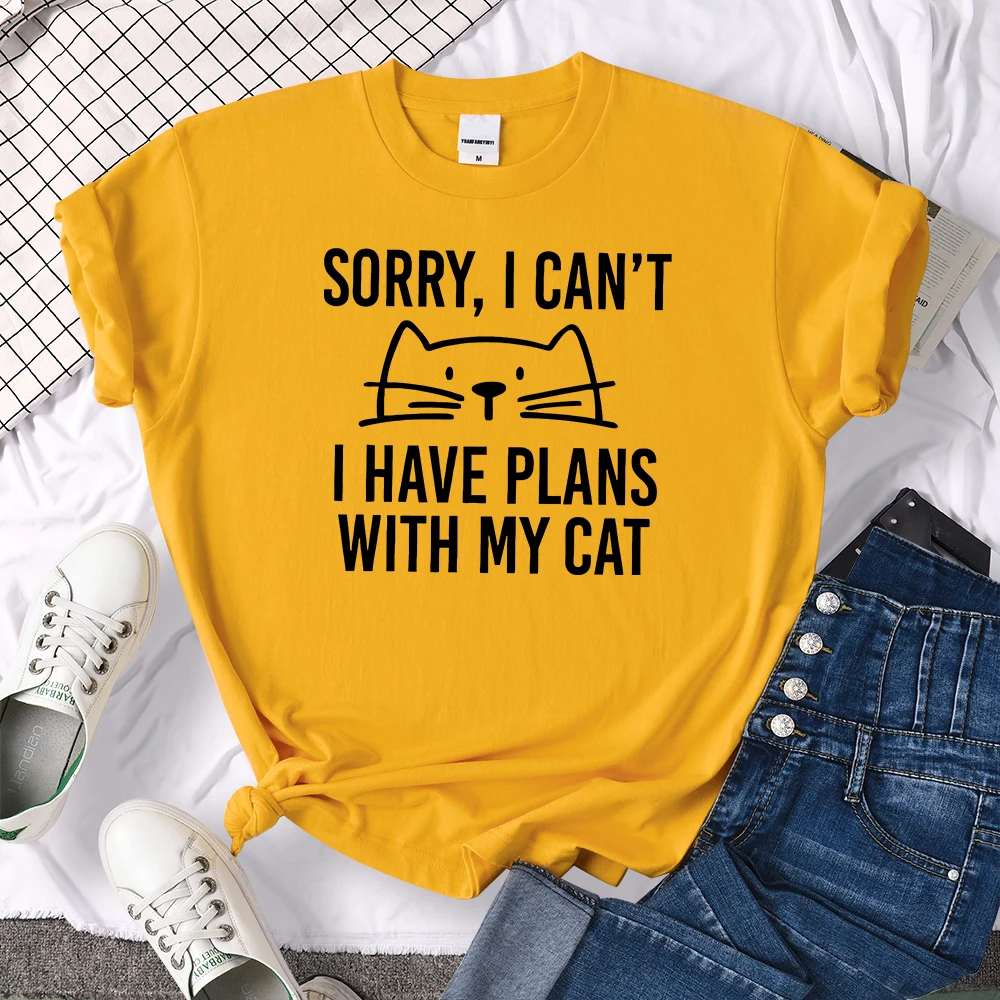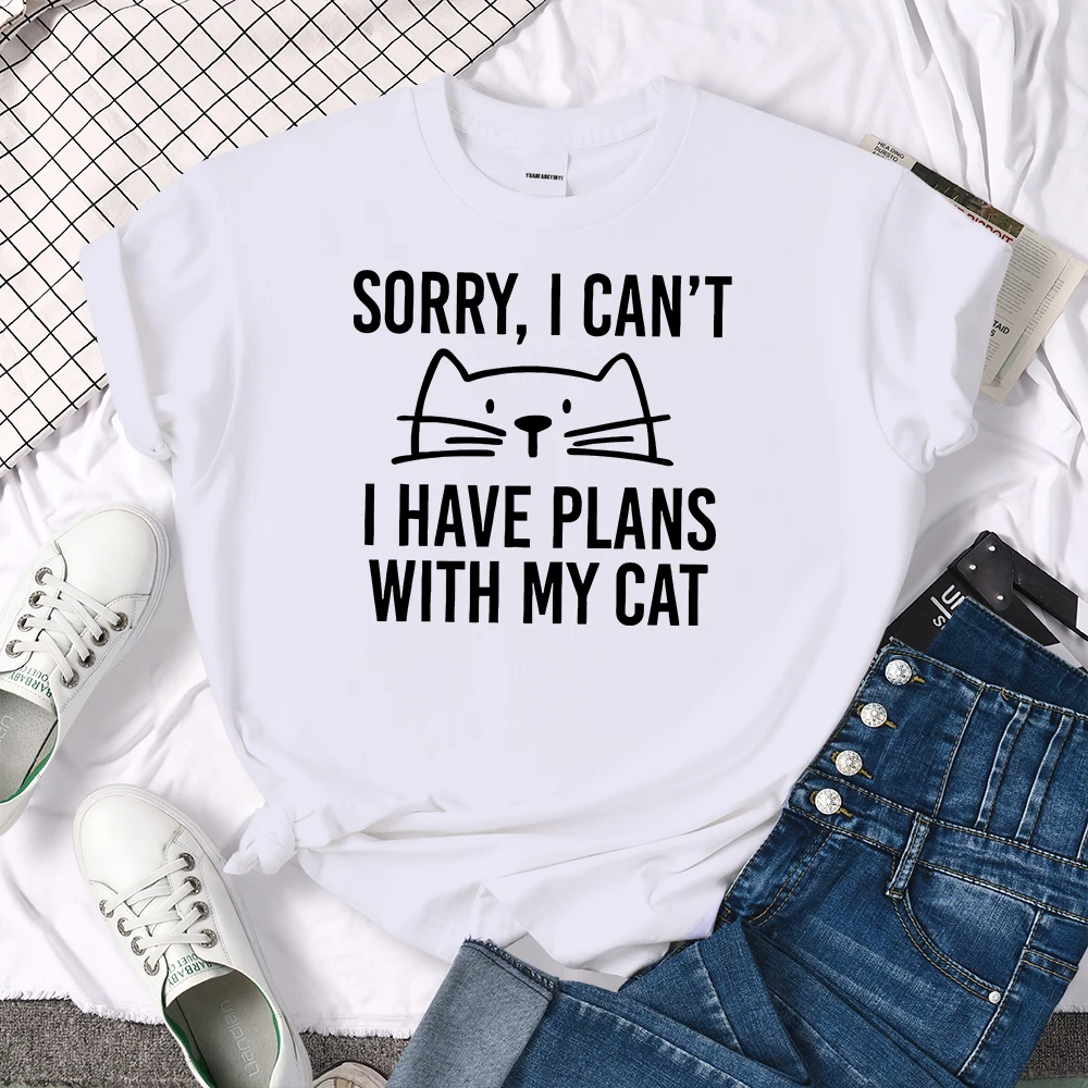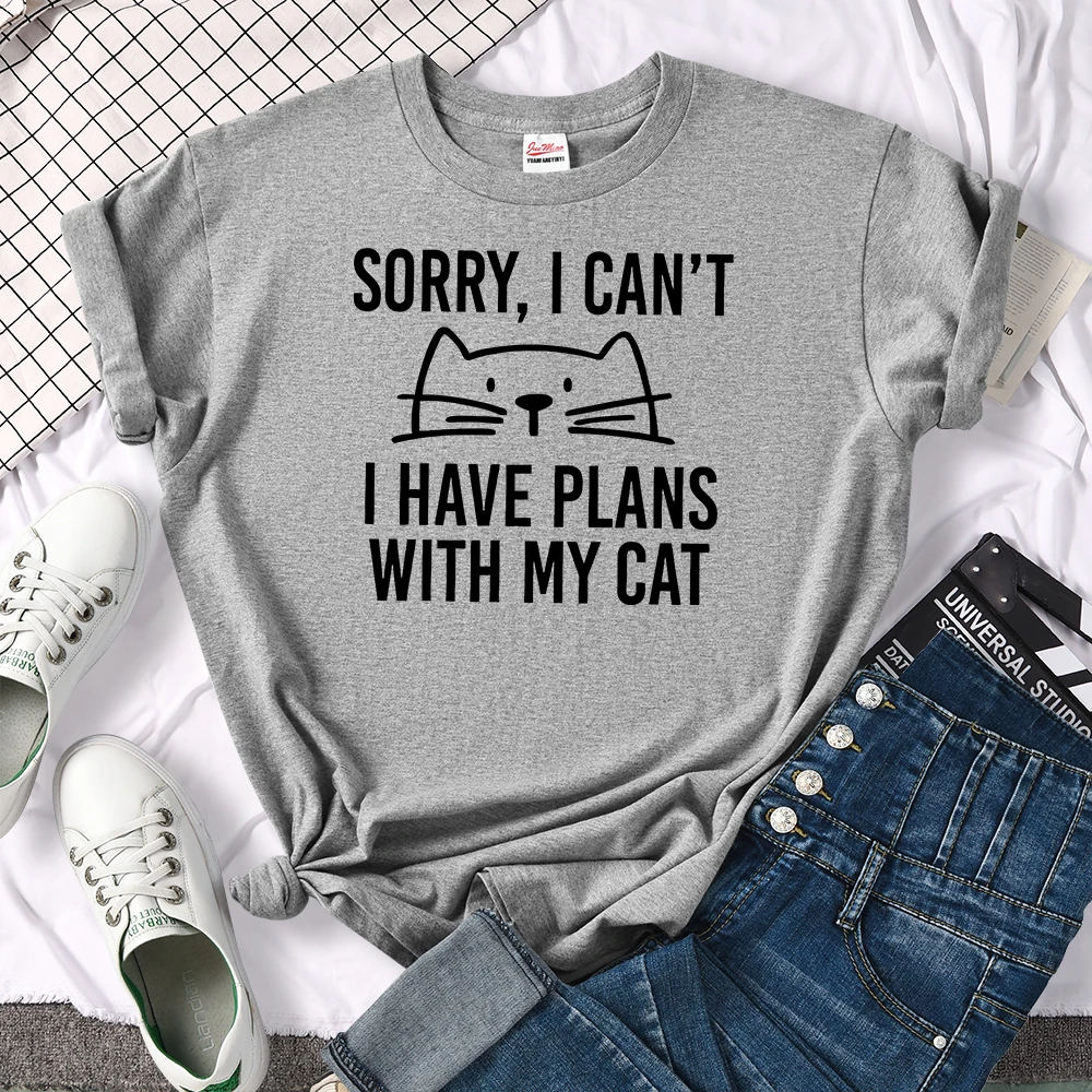 Извините, у меня нет планов с принтом My Cat, Женская Футболка Harajuku, Свободный Топ, ретро футболка с круглым вырезом, мягкие винтажные женские футболки