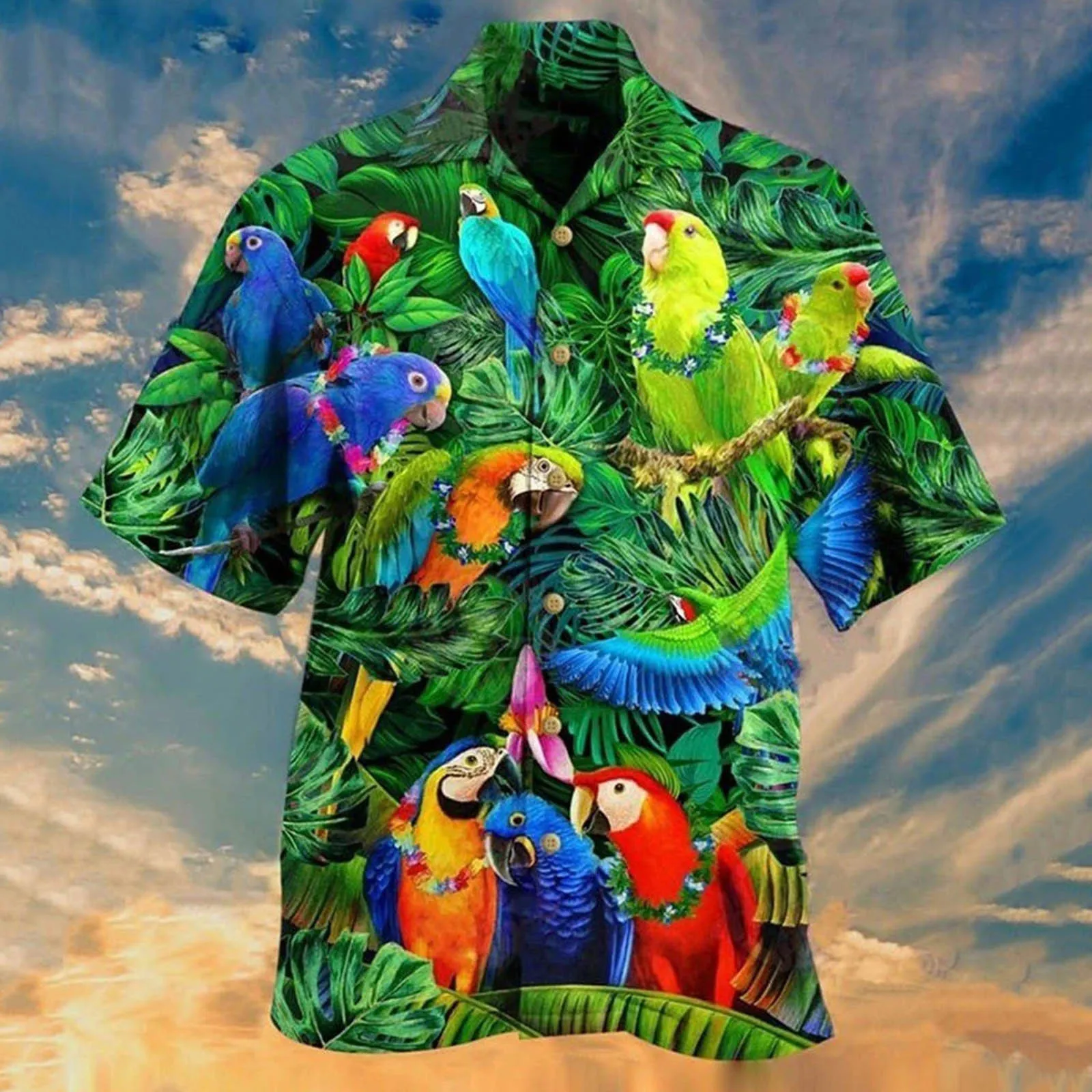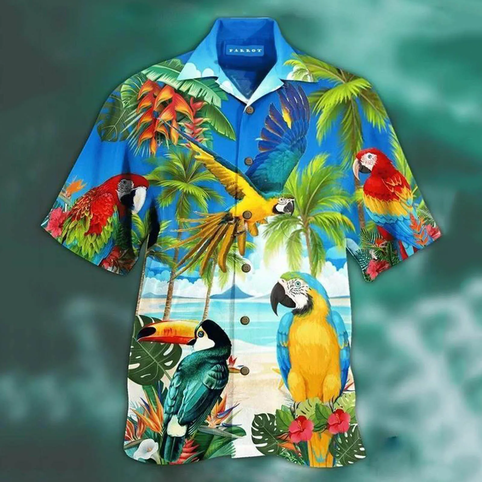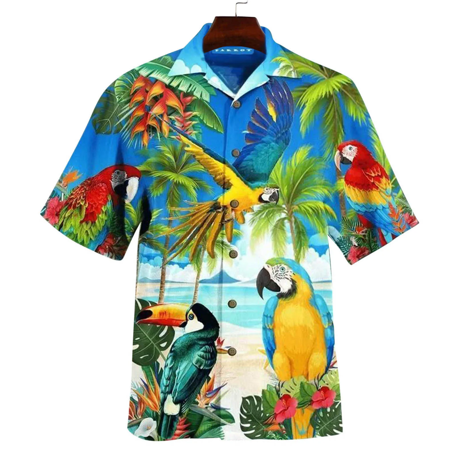 Гавайская Мужская рубашка в стиле пэчворк, с принтом в виде попугая...