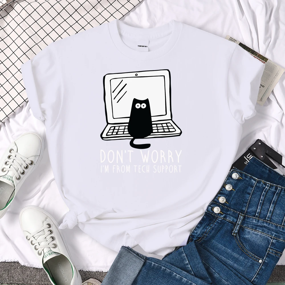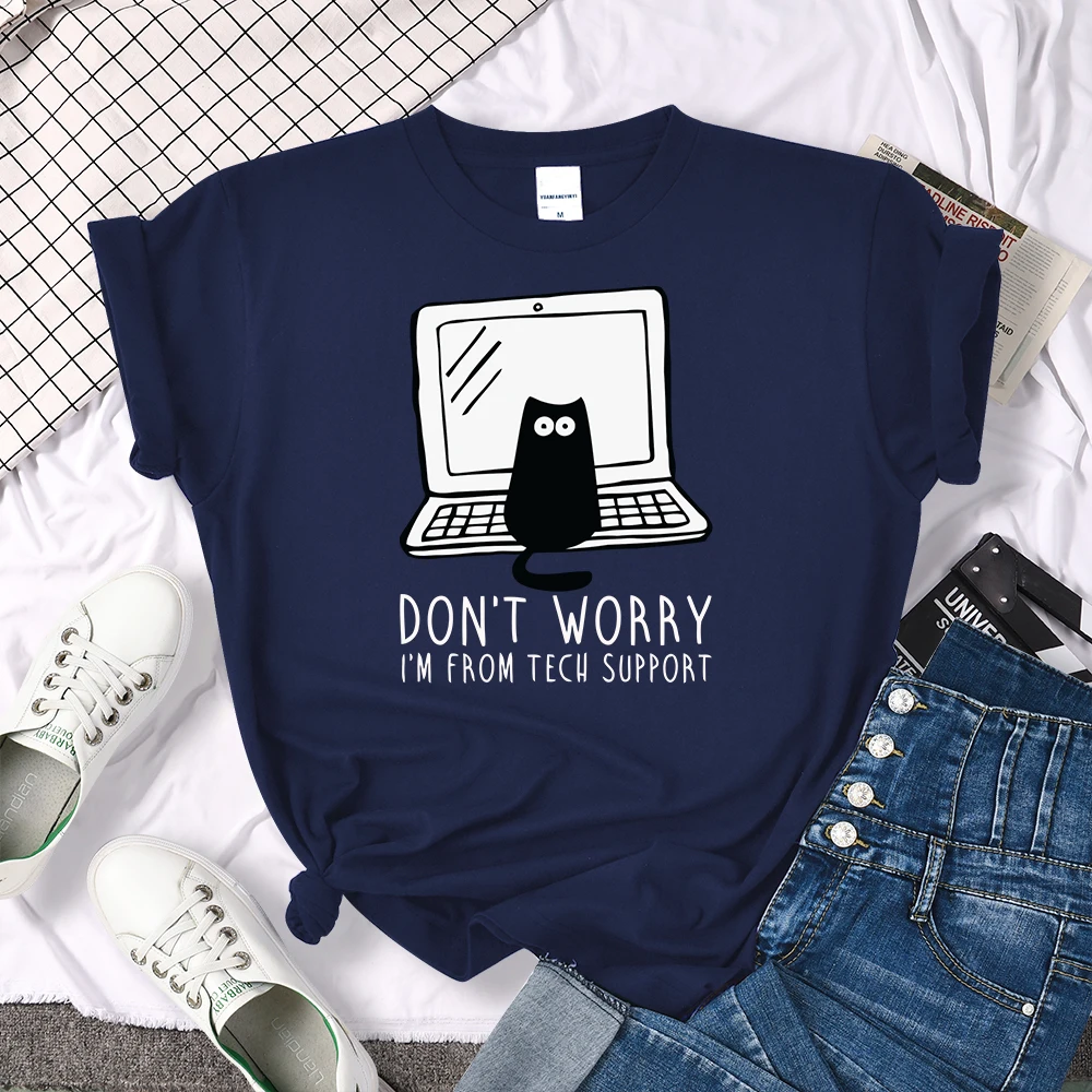 Женские футболки с принтом не волнуйтесь, я из тех-за технологии поддержки, Модные Качественные топы, забавная Повседневная футболка, модная женская футболка S-Xxxl