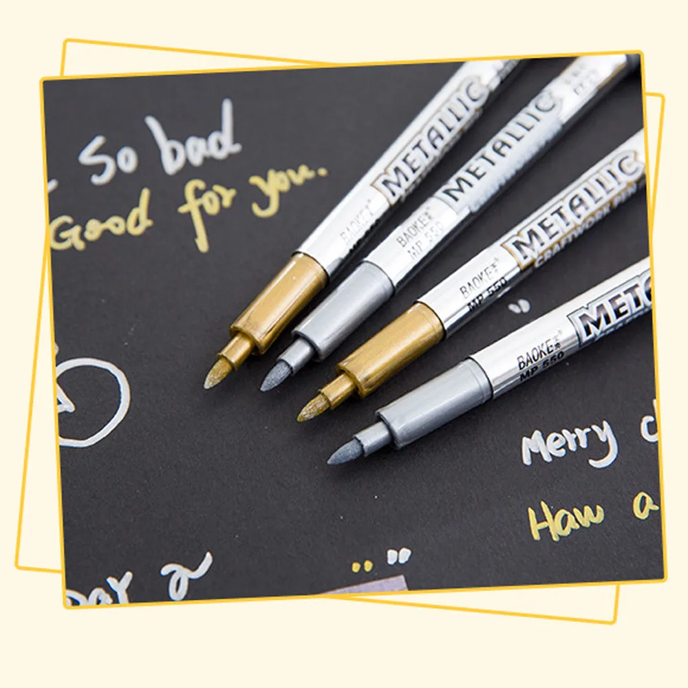 Металлические маркерные ручки золотого и серебристого цвета металлик Перманентные маркеры для DIY скрапбукинга ремесла художника иллюстрации