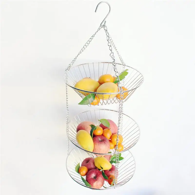 3-х уровневый провода подвесная корзина Нержавеющаясталь корзина с фруктами качели чаша стеллаж для овощей Дисплей подставка кухонная корзинка для хранения