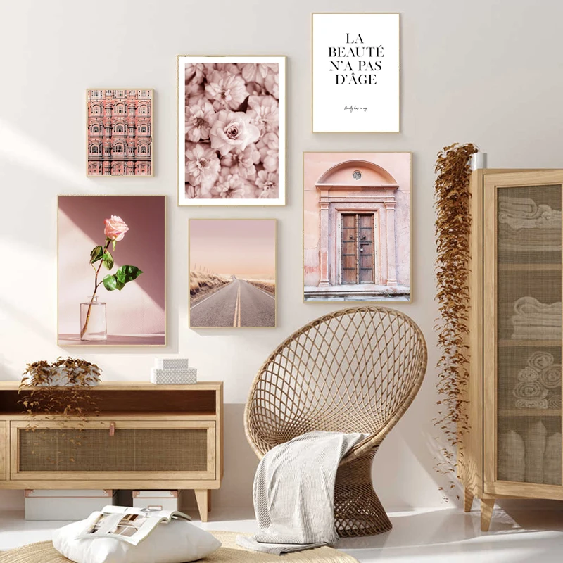 Постер с розовыми цветами и марокканскими дверями, исламские цитаты...
