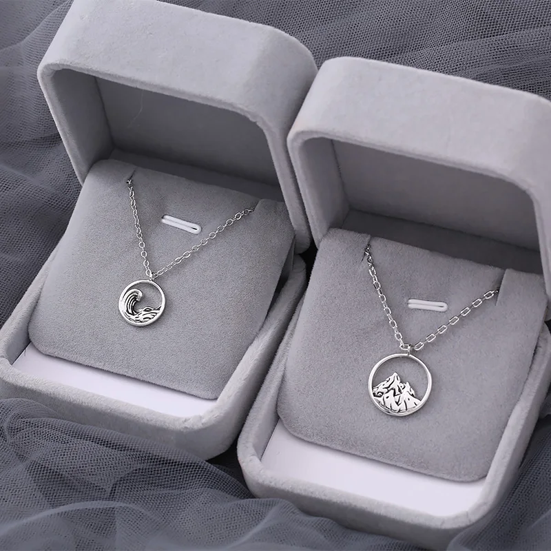 Парные ожерелья из нержавеющей стали, простые Подвески в виде океана, горы, чокер, ювелирные изделия для пар, для мужчин, женщин, подарки на день Святого Валентина