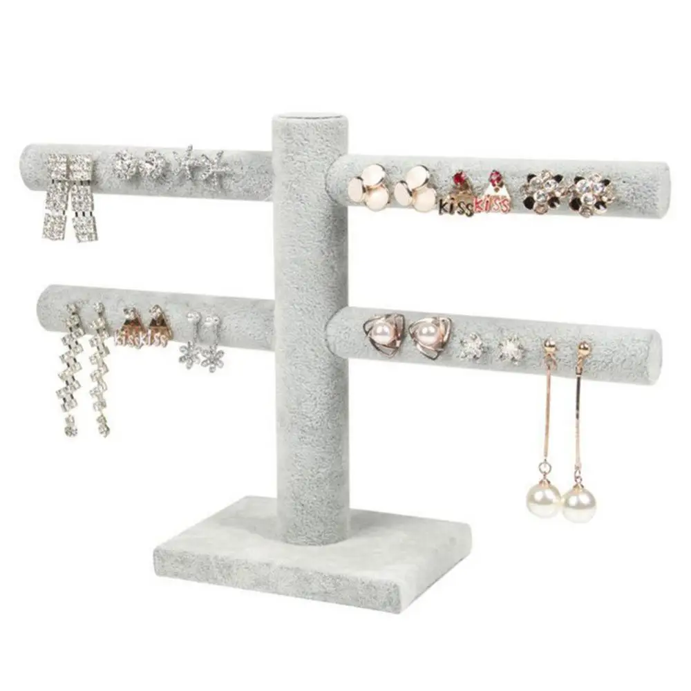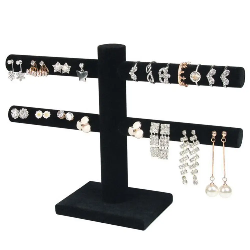 50% Лидер продаж 2 уровня с центральным ремешком в виде буквы т бархат ювелирные изделия Стенд Серьги Органайзер для ожерелий Дисплей держатель