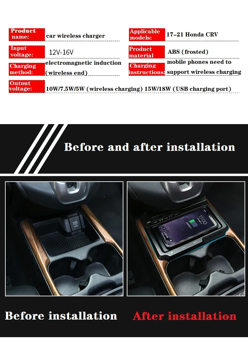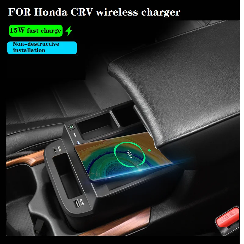 Автомобильное беспроводное зарядное устройство QI для Honda CRV 2017 2018 2019 2020 2021 15 Вт, чехол для быстрой зарядки, подлокотник, держатель для телефона