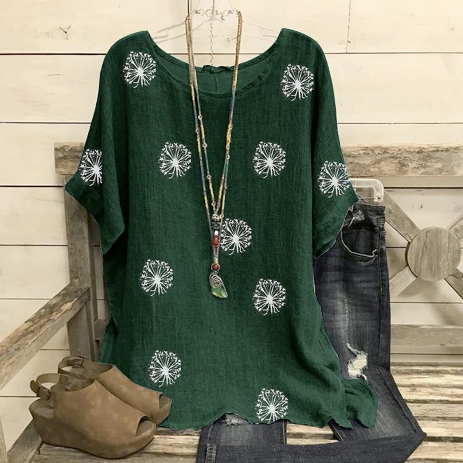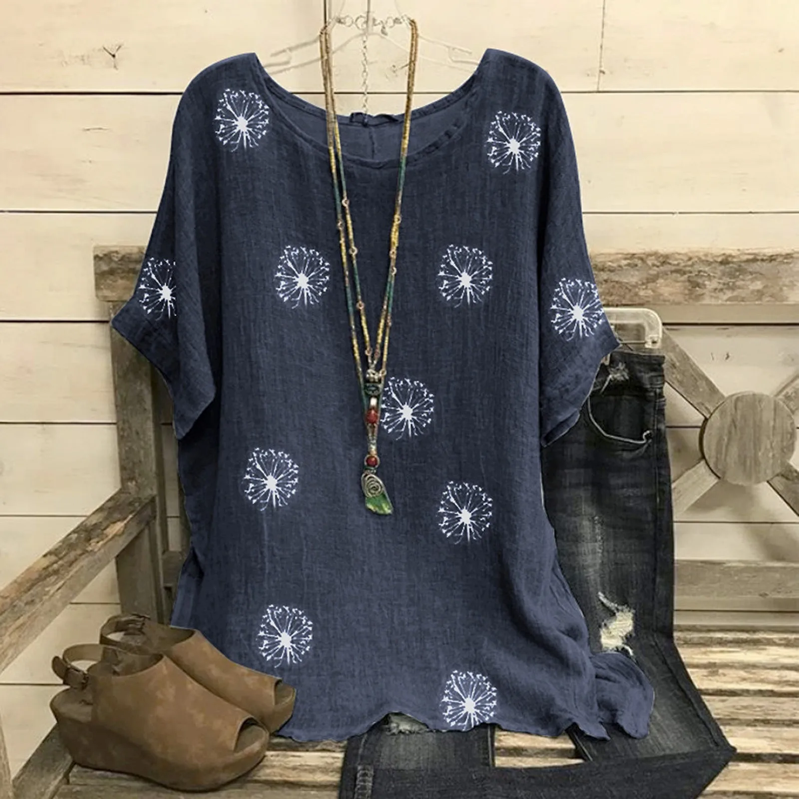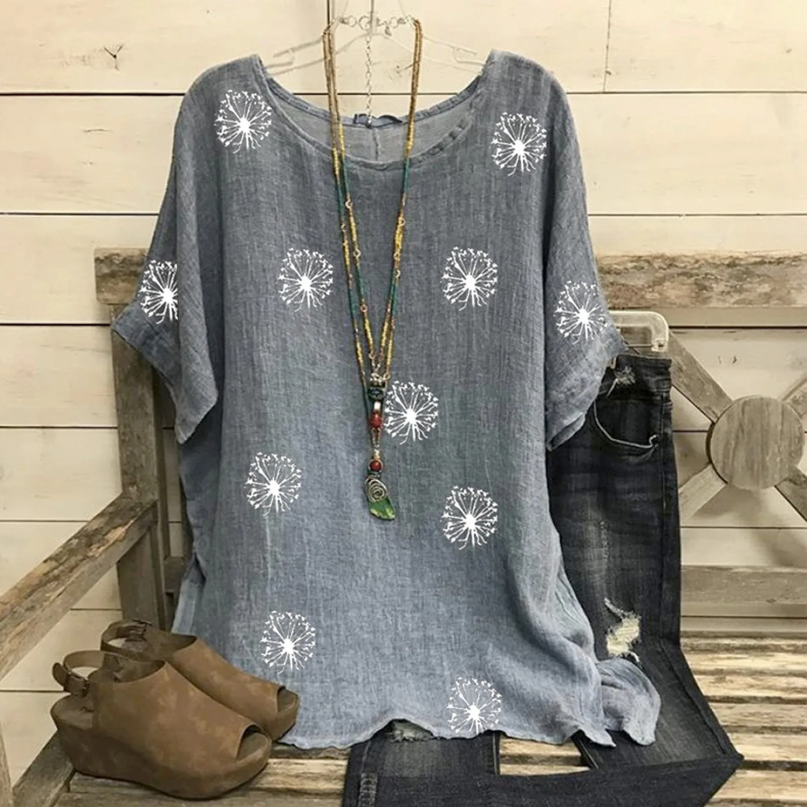 Женский винтажный топ из хлопка с круглым вырезом и коротким рукавом с цветочным принтом, блузка