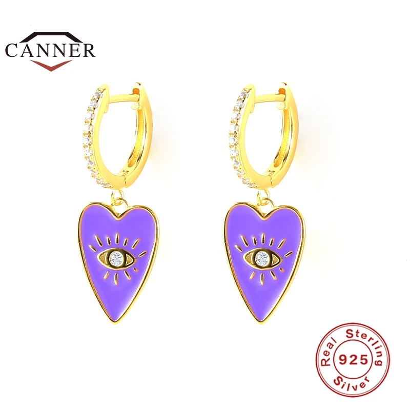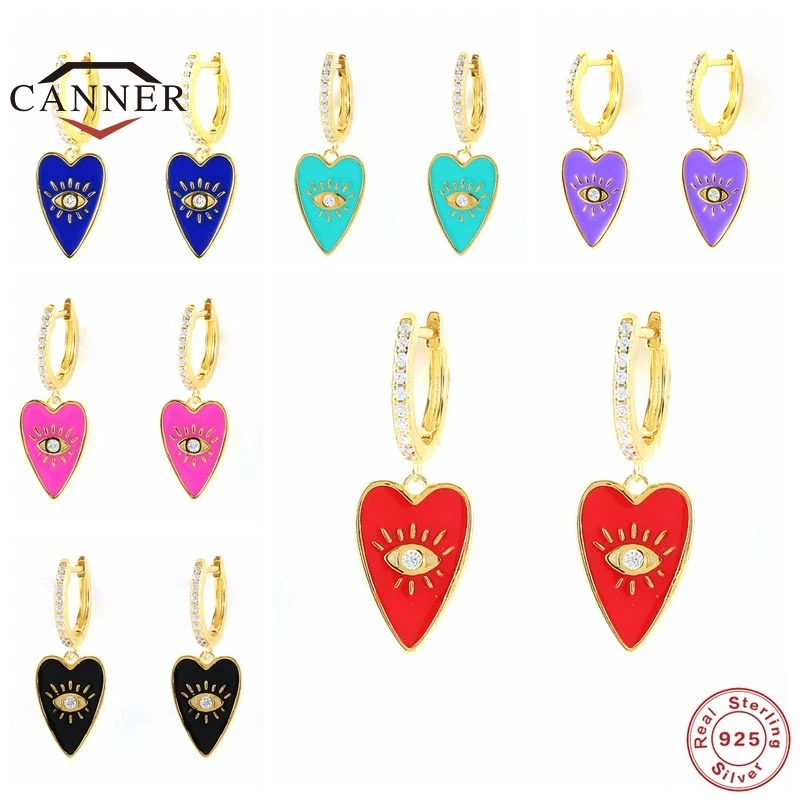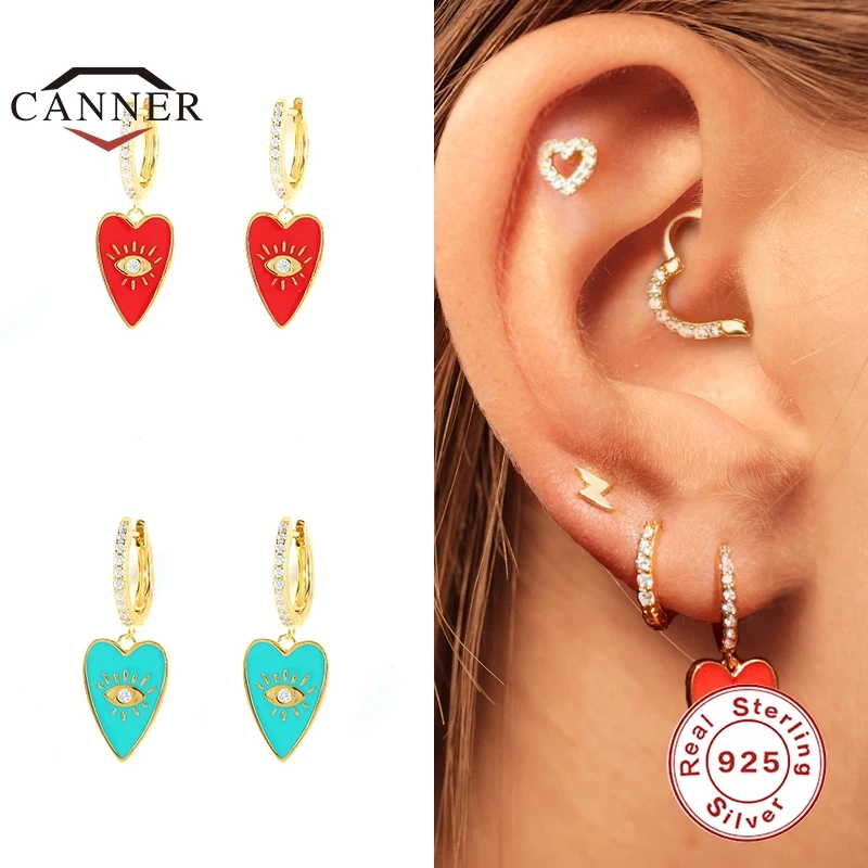 Женские серьги-кольца CANNER из стерлингового серебра 100% пробы, серьги-кольца Huggie в форме сердца из циркония 925, серьги-гвоздики, серьги в стиле пирсинга, ювелирные изделия