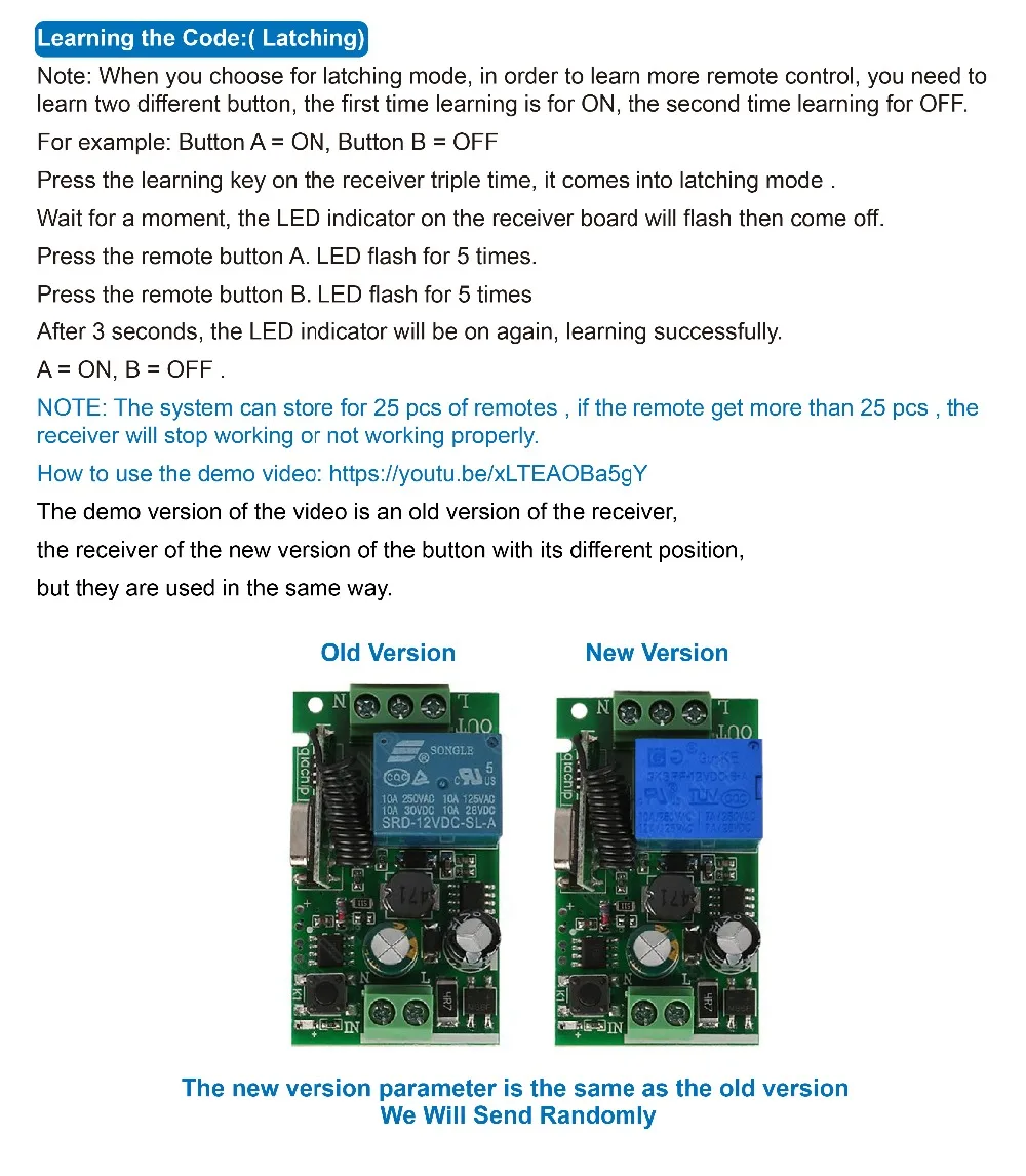 В том случае, если вам это нужно, чтобы работать с ваш собственный приемник, вы должны убедиться, что 100%, что ваш Приемник 433 МГц частота, можно ли вносить изменения в Приемник имеет кнопку обучения, чтобы узнать передатчик код? И ваш приемник может быть совместим с 1527 передатчиком чипа.