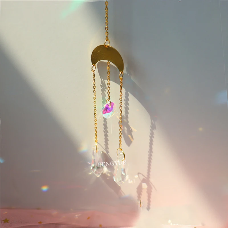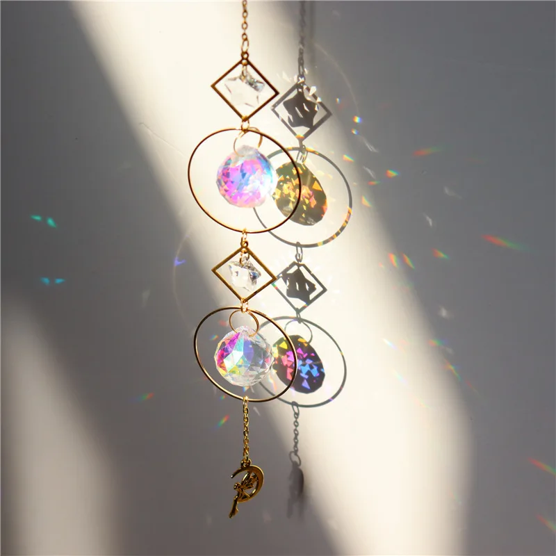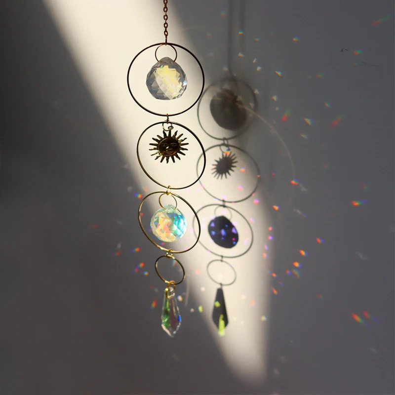 Луна солнце звезда Ловец обруч Небесный Радуга производитель Кристалл подвесной автомобиль Призма Ловец зеркало заднего вида Декор садовая Фея декор