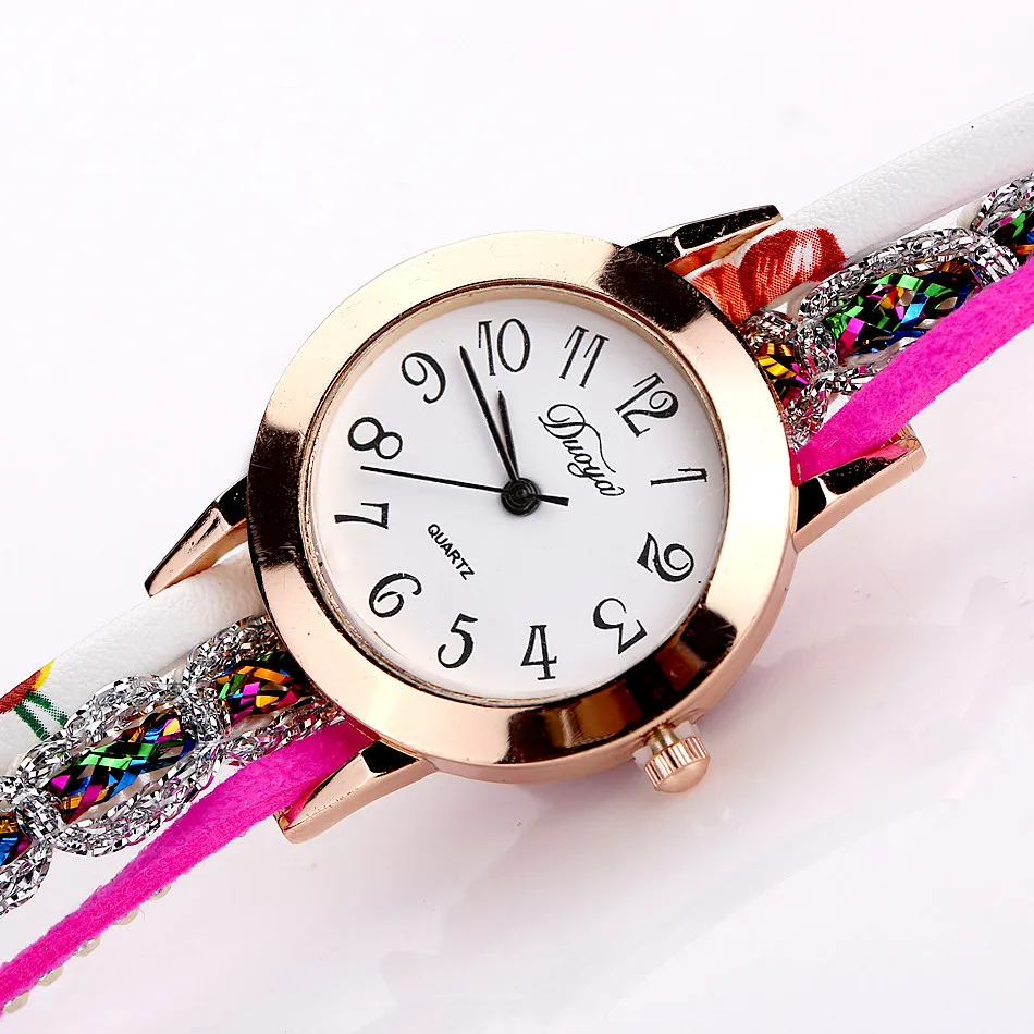 Часы женские, кварцевые, с цветочным рисунком, стразы