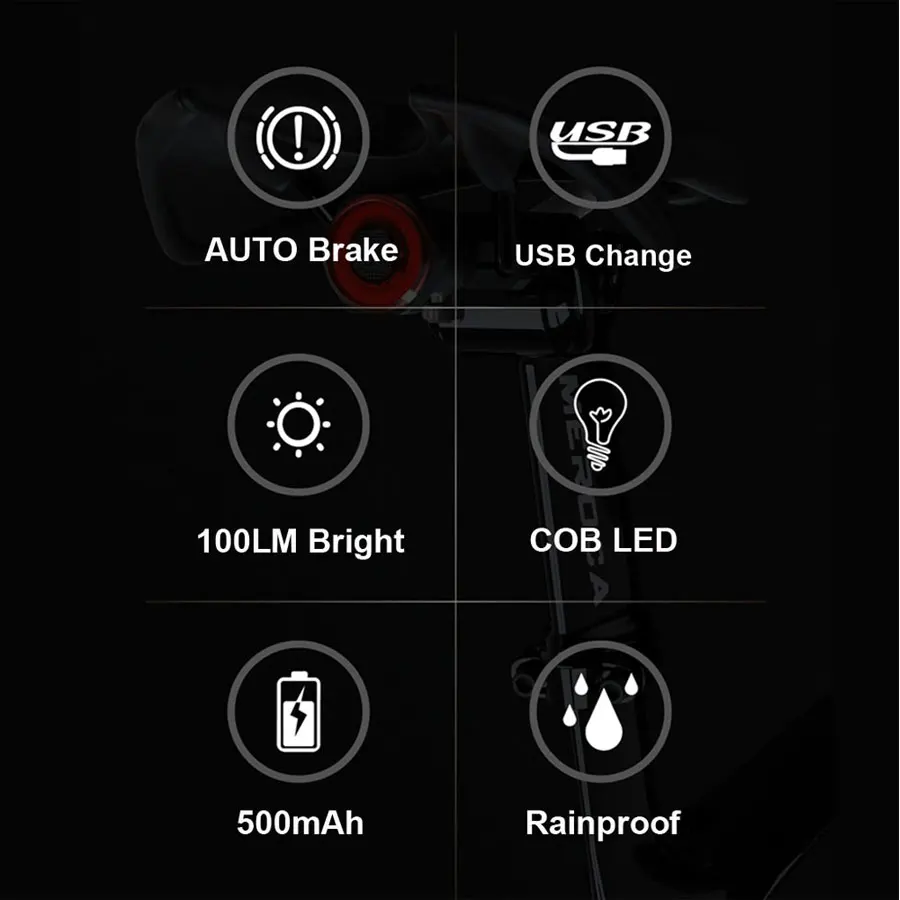 1. Интеллектуальная Тормозная индукция2. Прямая зарядка через USB3. Интеллектуальный светильник4. 30h длительный срок службы батареиРежим освещения: всегда вкл/выкл/вспышка