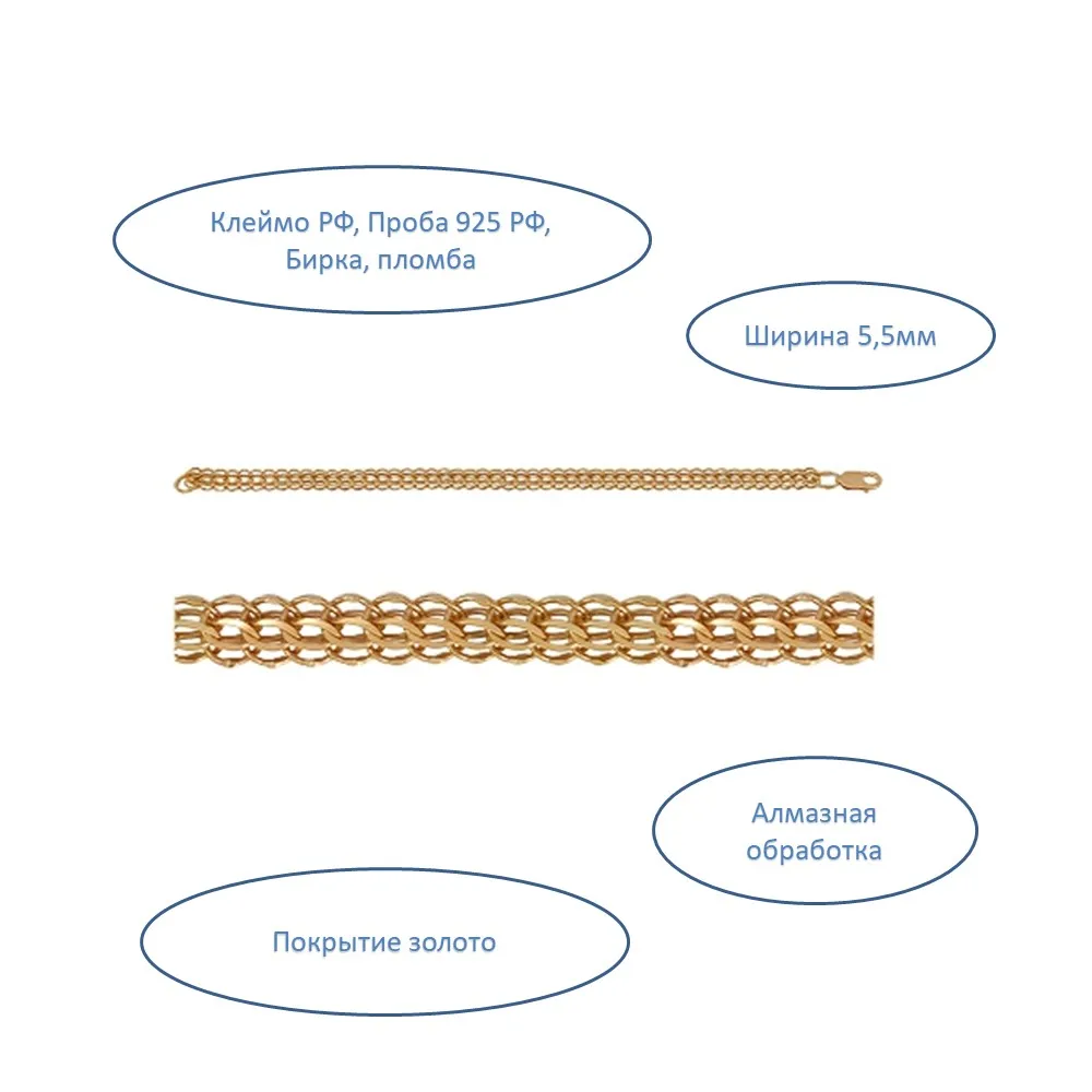 Цепь NOVOZOLOTO из серебра подлинного 925 пробы, покрытие золото, плетение питон, алмазная обработка, производство Россия