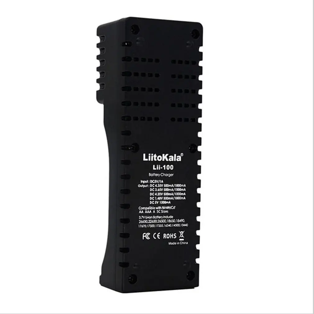 Особенности:1. Вход Micro USB DC5V, один отдельный разъем и каналы зарядки.2. Четыре СВЕТОДИОДНЫЙ индикатора показывают состояние зарядки, а также показывают тип батареи при вставке в батарею.3. Определите Li-Ion и ni-mh автоматически, но, вам нужно отрегулировать режимы зарядки для LiFePO4 и 3,85 V Li-Ion батареи.4. Она может активировать 0V перезаряжаемый аккумулятор, но зарядное устройство не берем денег 1,6-2,2 V батарея типа.5. Встроенная защита от перезарядки, защита от перегрузки и защита от полярного реверса. Кроме того, он может идентифицировать сломанный аккумулятор.Описание:1. Это зарядное устройство предназначено для портативного, гибкого и нескольких типов батарей.2. Он может обнаруживать Тип аккумулятора и автоматически заряжать аккумулятор под выбранным вами током зарядки.Зарядный ток 3,500/1000 мАч для выбора.Спецификация:Бренд: LiitoKalaМодель: Lii-100BВходная мощность: DC5V-1AТок зарядки: 500мА/1000мАПостоянная зарядка с отключенным током менее 100 мА · чВыходное напряжение: напряжение 4,75-5,25 вКритическое напряжение на выходе: 3,0 +/-0,1 VТок в режиме ожидания: не более 15 мА · чСовместимые типы батарей: