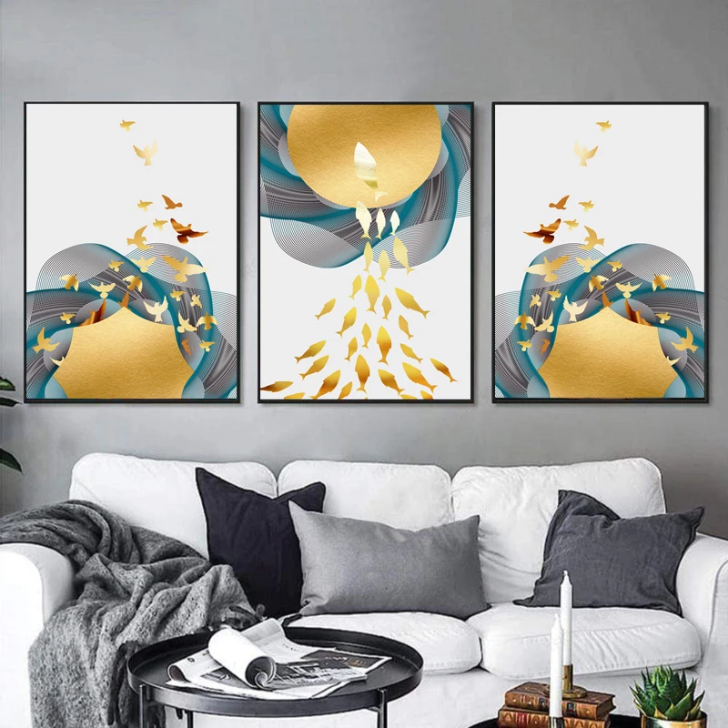Абстрактная Картина на холсте с изображением золотых рыбок, настенные художественные плакаты и печатные картины для дома, постеры, картина на стену, настенные постеры картины