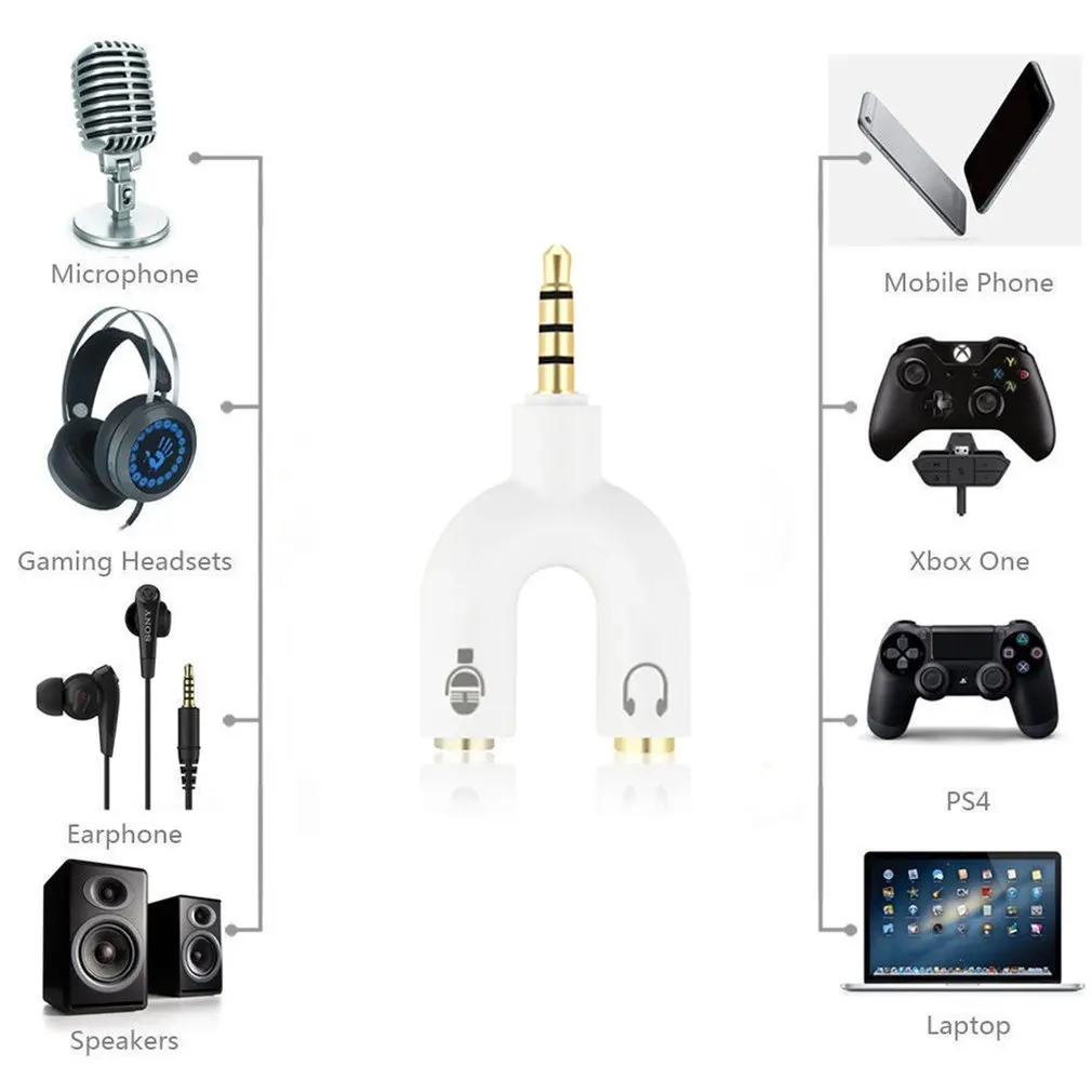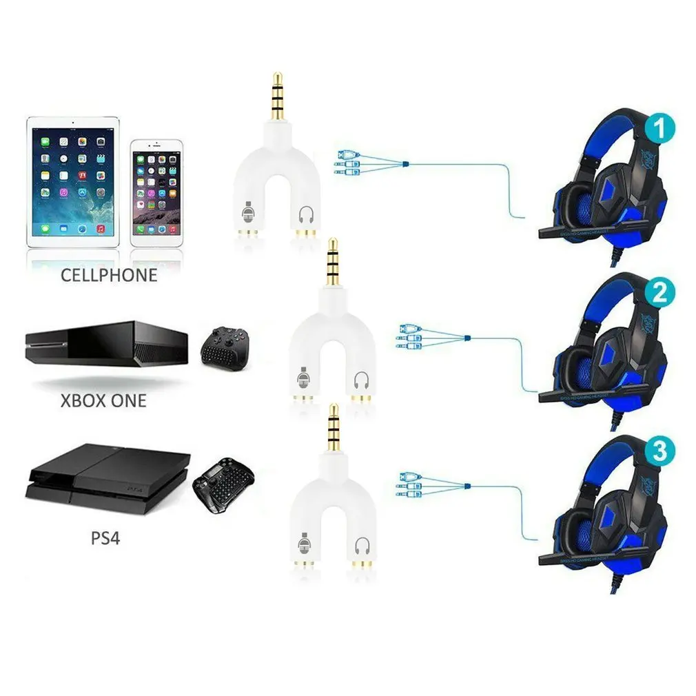 3,5 мм разветвитель Стерео разъем U-vorm стерео аудио вход для микрофона и Hoofdtelefoon Oortelefoon сплиттер адаптеры voor PS4 портативных ПК oor гарнитура