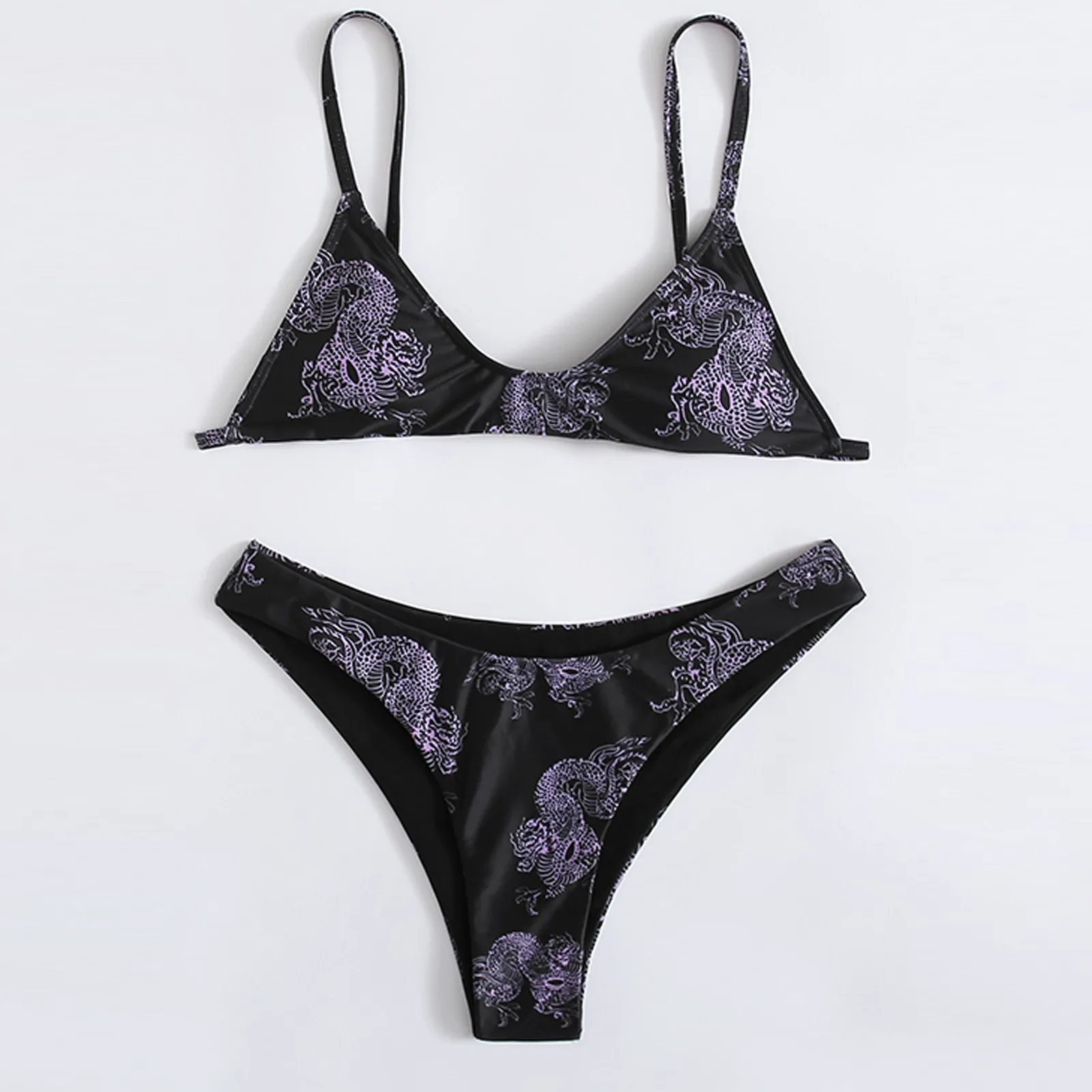 Женский купальный костюм 2022, бандо, бандажный комплект бикини с принтом китайского дракона, купальник пуш-ап, пляжная одежда, купальник, женские Купальники