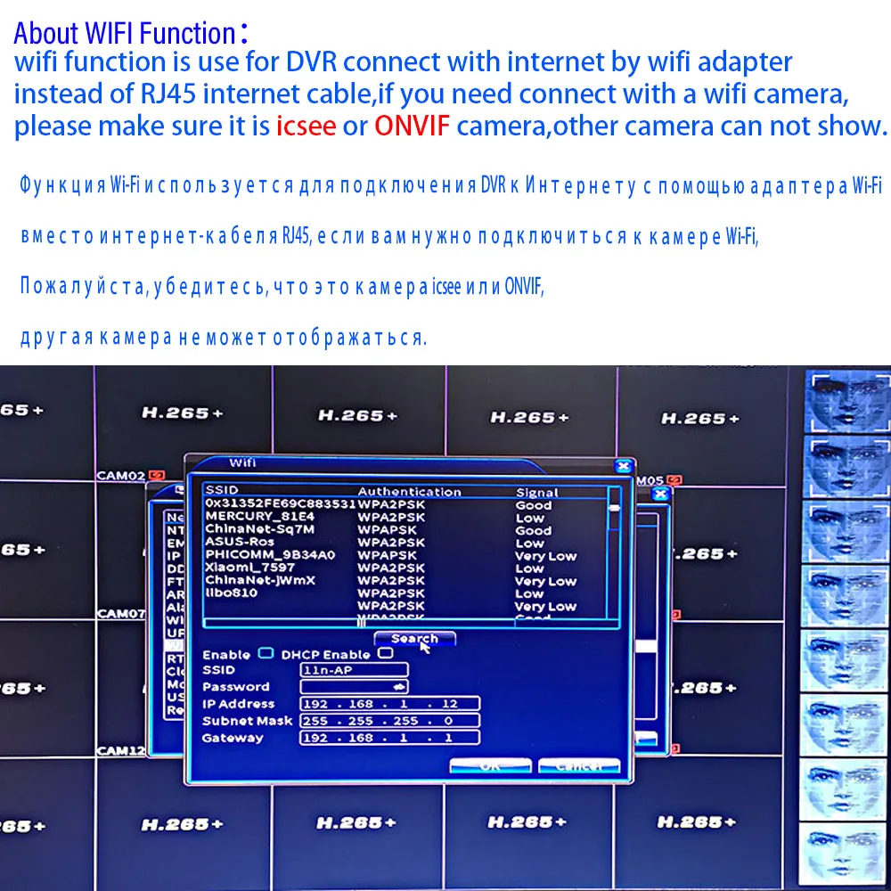 Wifi fnction используется для DVR подключения к Интернету через wifi адаптер вместо сетевого кабеля RJ45