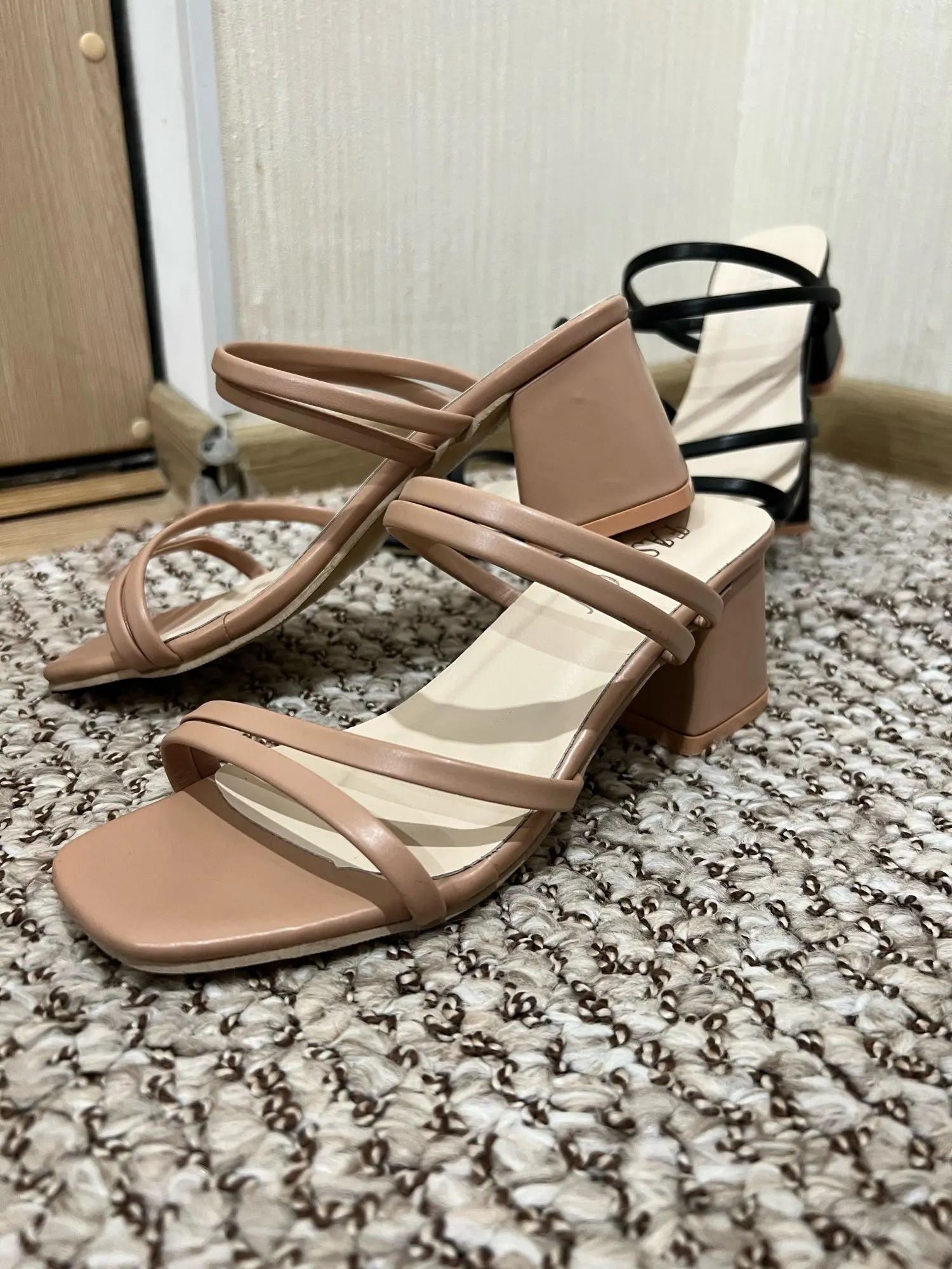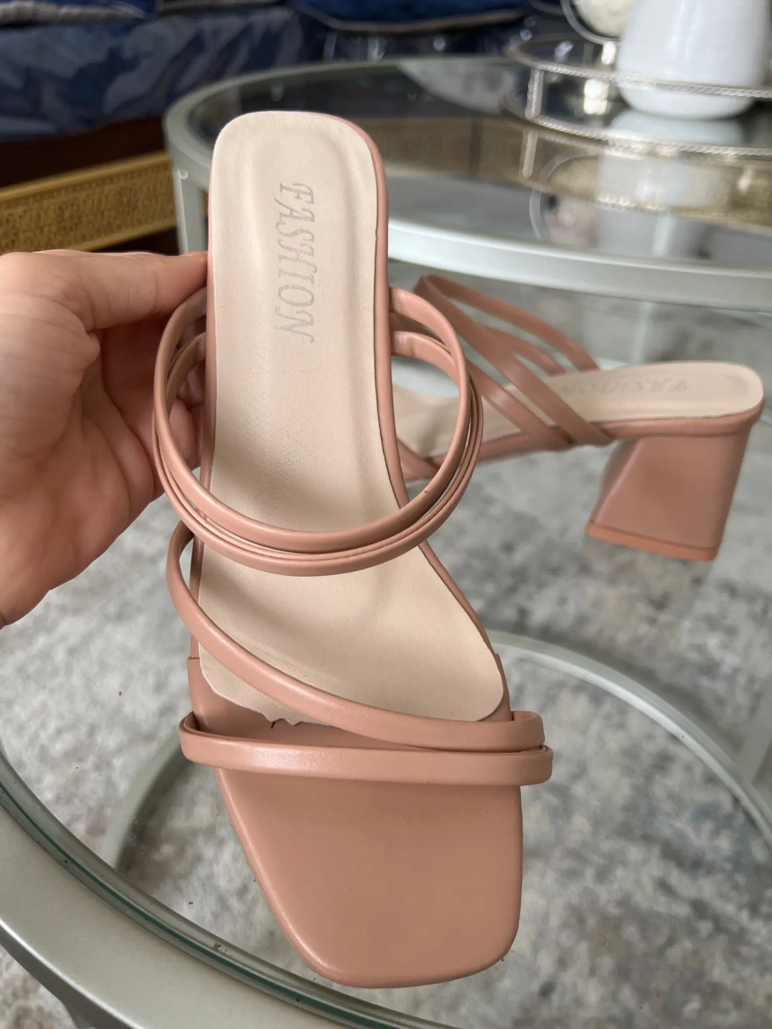 Сандалии женские на квадратном каблуке, элегантные кожаные шлепанцы, перекрестная шнуровка, сланцы, летняя модель, 2021