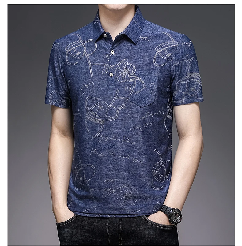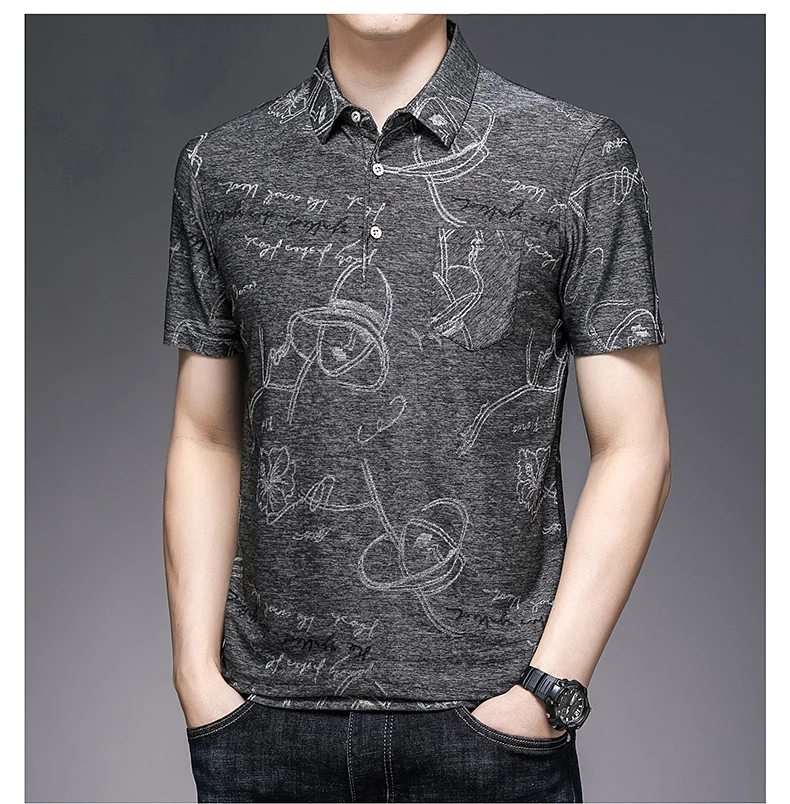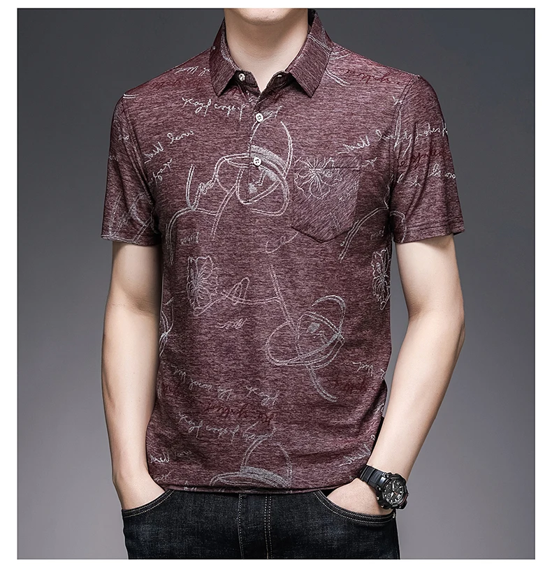 Рубашка-поло мужская однотонная, шелковая хлопковая рубашка с корот...