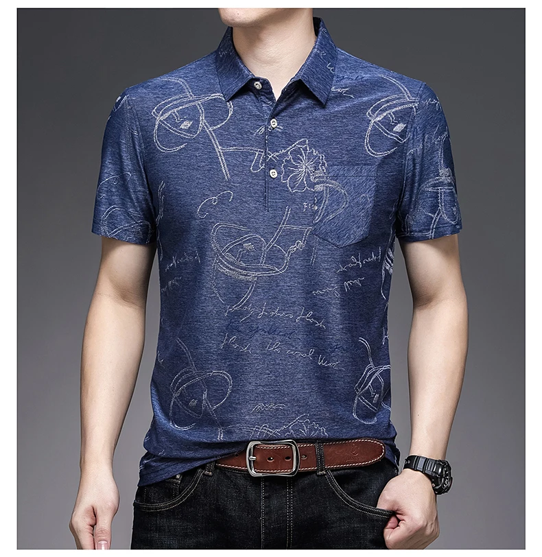 Мужская футболка-поло, с принтом, с коротким рукавом, приталенная, T1042