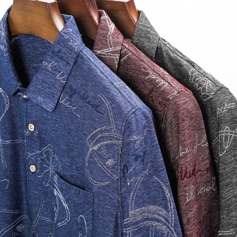 Рубашка мужская приталенная с принтом, шелковая Хлопковая сорочка с...
