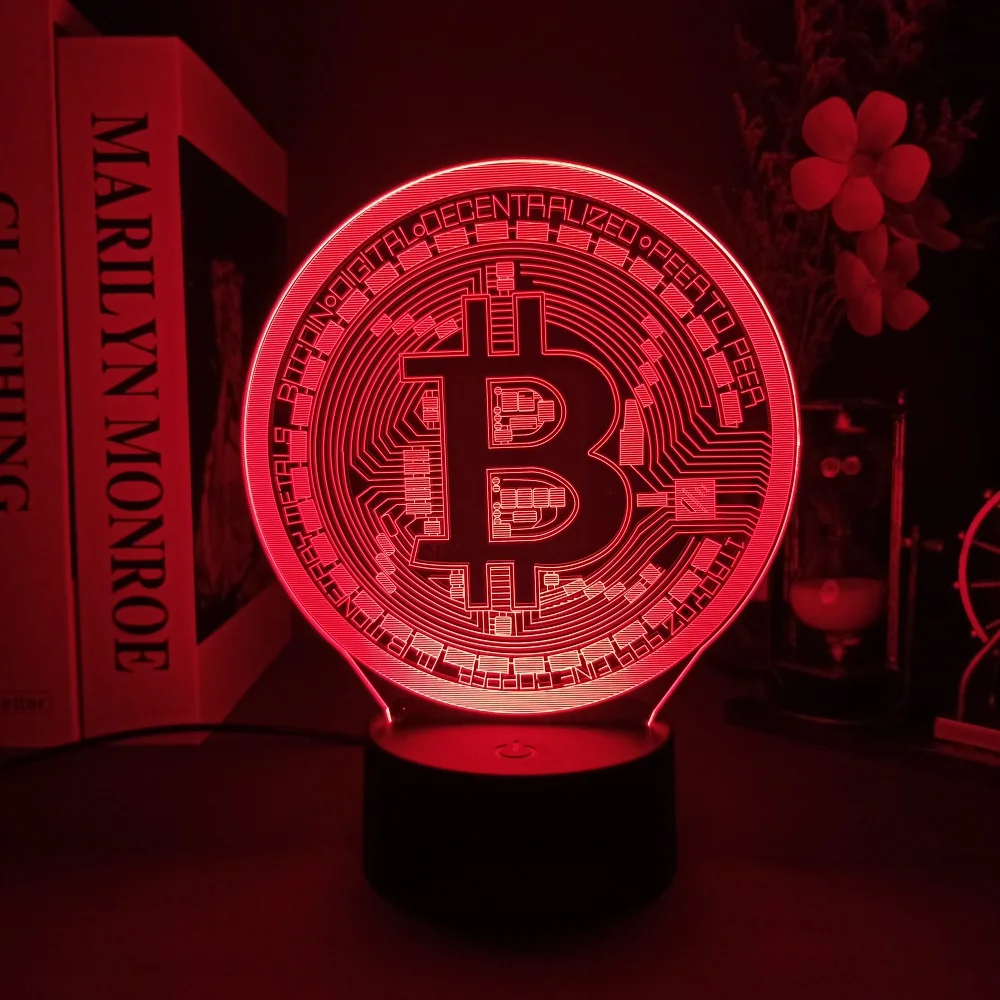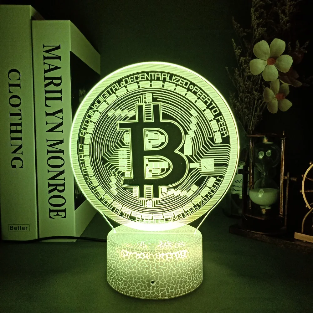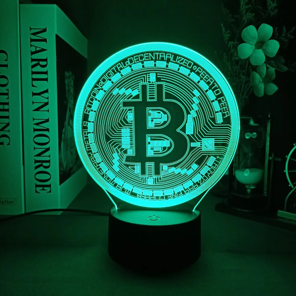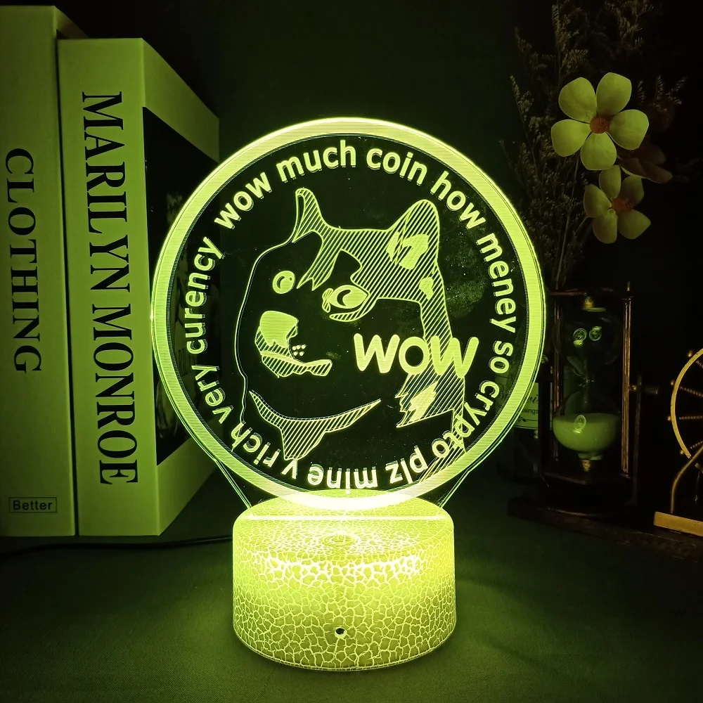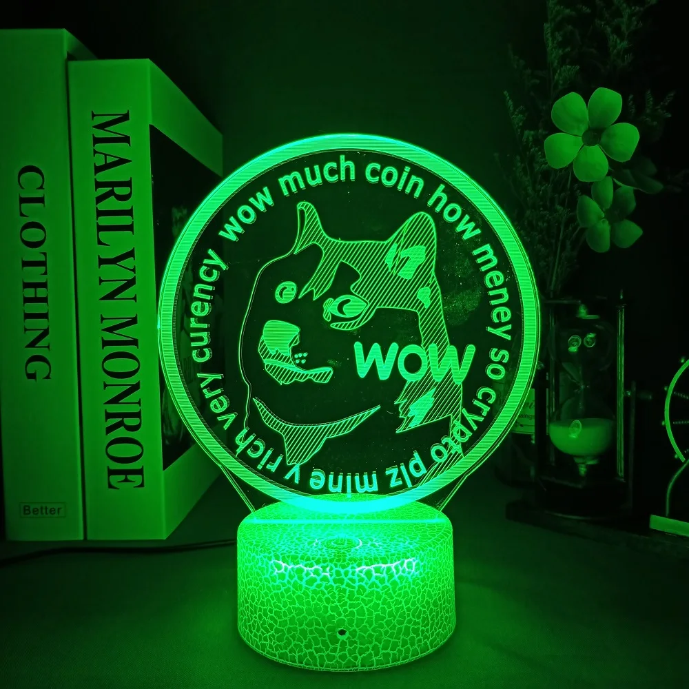 Акриловый светодиодный ночсветильник Dogecoin Bitcoin для комнаты, декоративный светильник с сенсорным датчиком 716 цветов, переменный стол, ночная лампа
