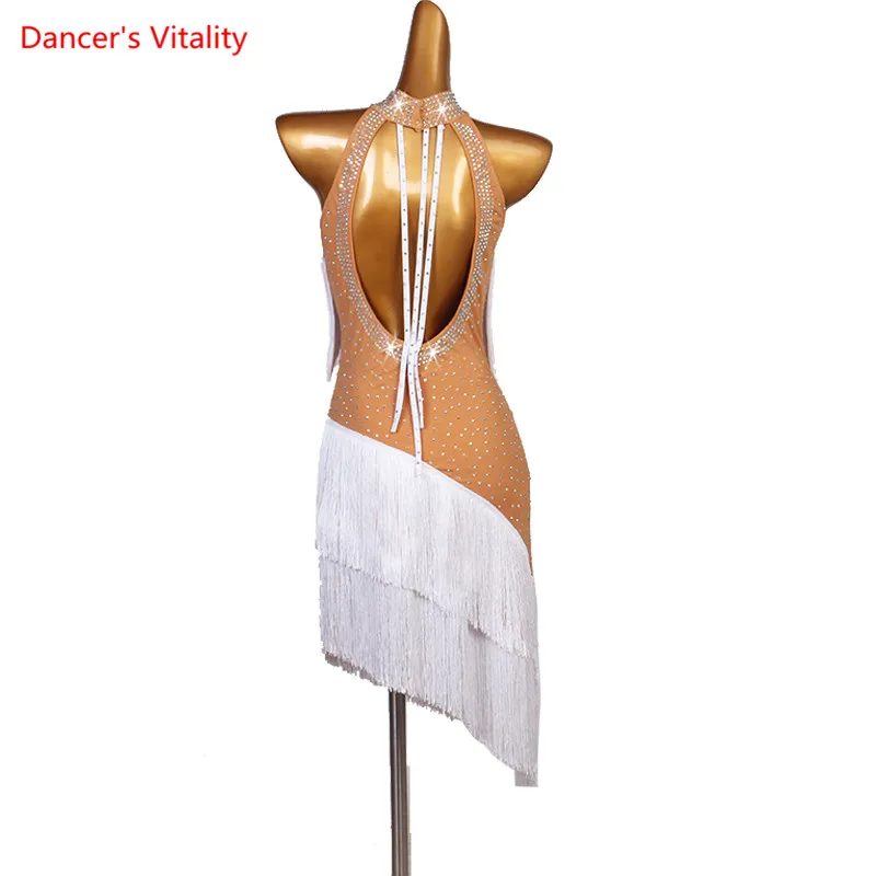 Платье женское для латиноамериканских танцев, с бахромой и камнями