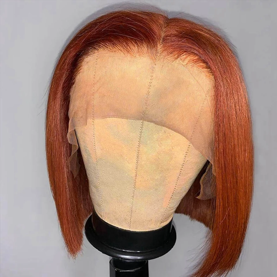 Имбирь оранжевый мятный зеленый цветной боб парик T кружева фронта человеческих волос парики предварительно выщипывания волос с детскими волосами бордовый красный для женщин