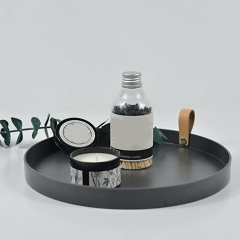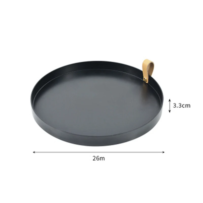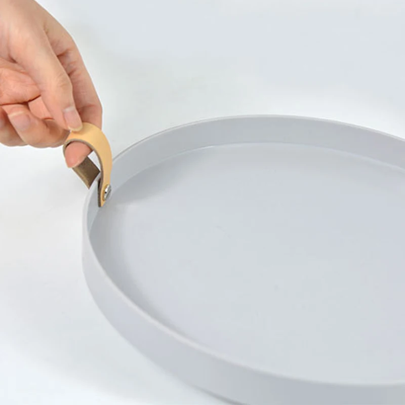 Новый креативный поднос с ручкой из искусственной кожи, косметический поднос, маленькие предметы, Настольная дисковая тарелка для хранения 26 см